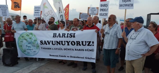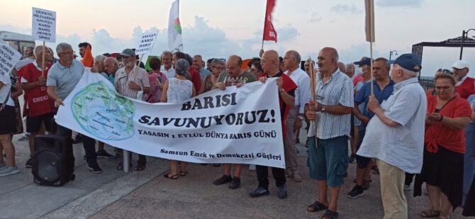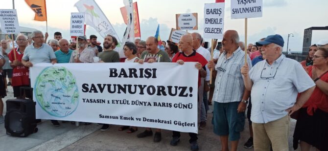 Samsun Emek Ve Demokrasi Güçleri, 1 Eylül Dünya Barış Günü vesilesiyle Atakum Çobanlı İskelesi’nde basın açıklaması düzenledi. Açıklamayı Samsun Emek ve Demokrasi Güçleri adına Arzu Özçelik okudu.