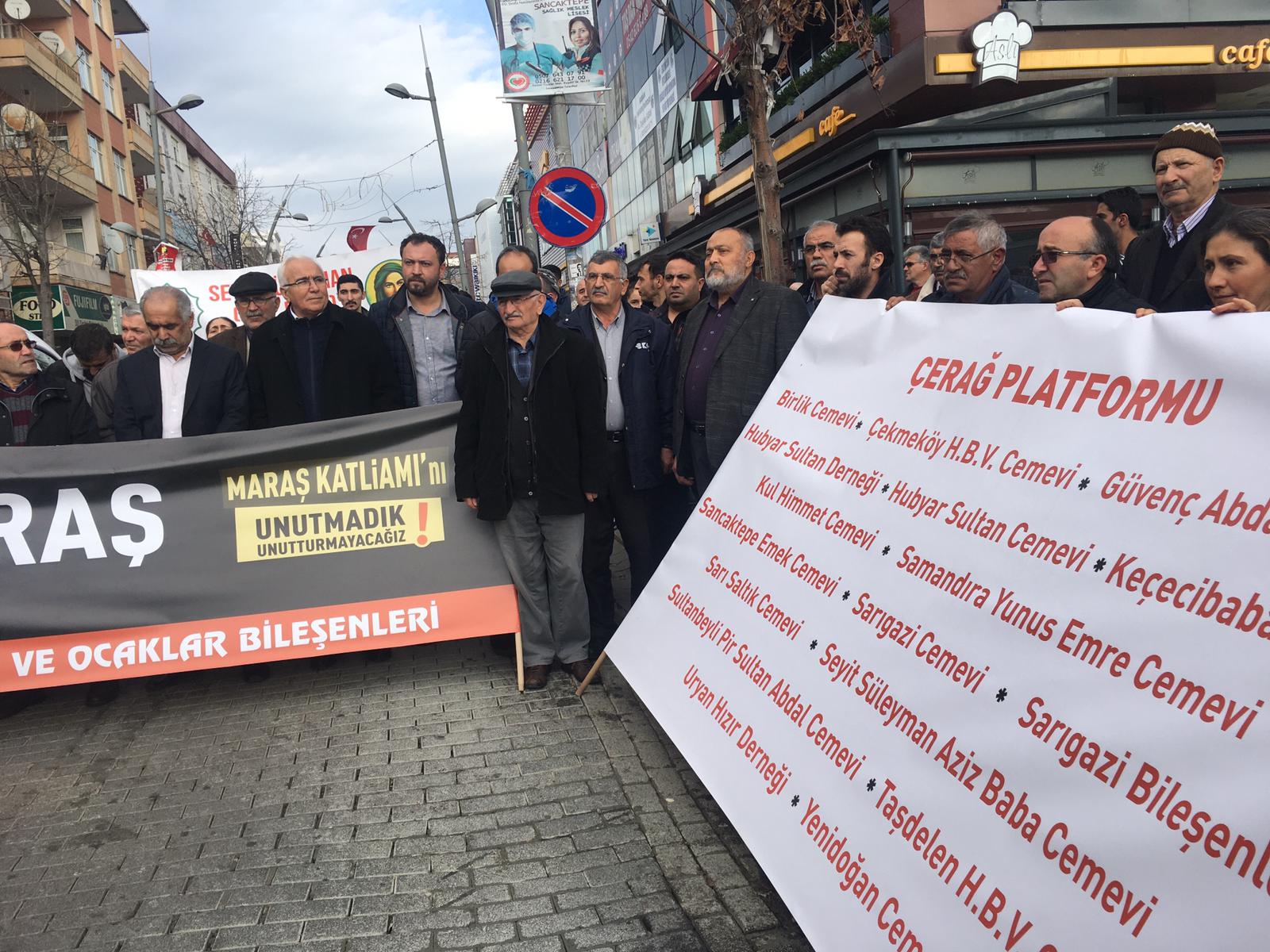 İstanbul Anadolu Yakası’nda bulunan Sarıgazi Cemevi, Sarıgazi Bileşenleri, Keçecibaba Cemevi, Taşdelen Cemevi, Uryan Hızır Derneği, Birlik Cemevi, Yenidoğan Cemevi, Samandıra Yunus Emre Cemevi, Sancaktepe Emek Cemevi, Hubyar Sultan Cemevi, Sultanbeyli Pir Sultan Cemevi, Kul Himmet Cemevi, Seyit Süleyman Aziz Baba Cemevi, Güvenç Abdal Derneği, Hubyar Derneği, Sarı Saltık Cemevi ve Çekmeköy Cemevi öncülüğünde kitlesel bir yürüşle Maraş Katliamı’nda yaşamını yitirenler anıldı.