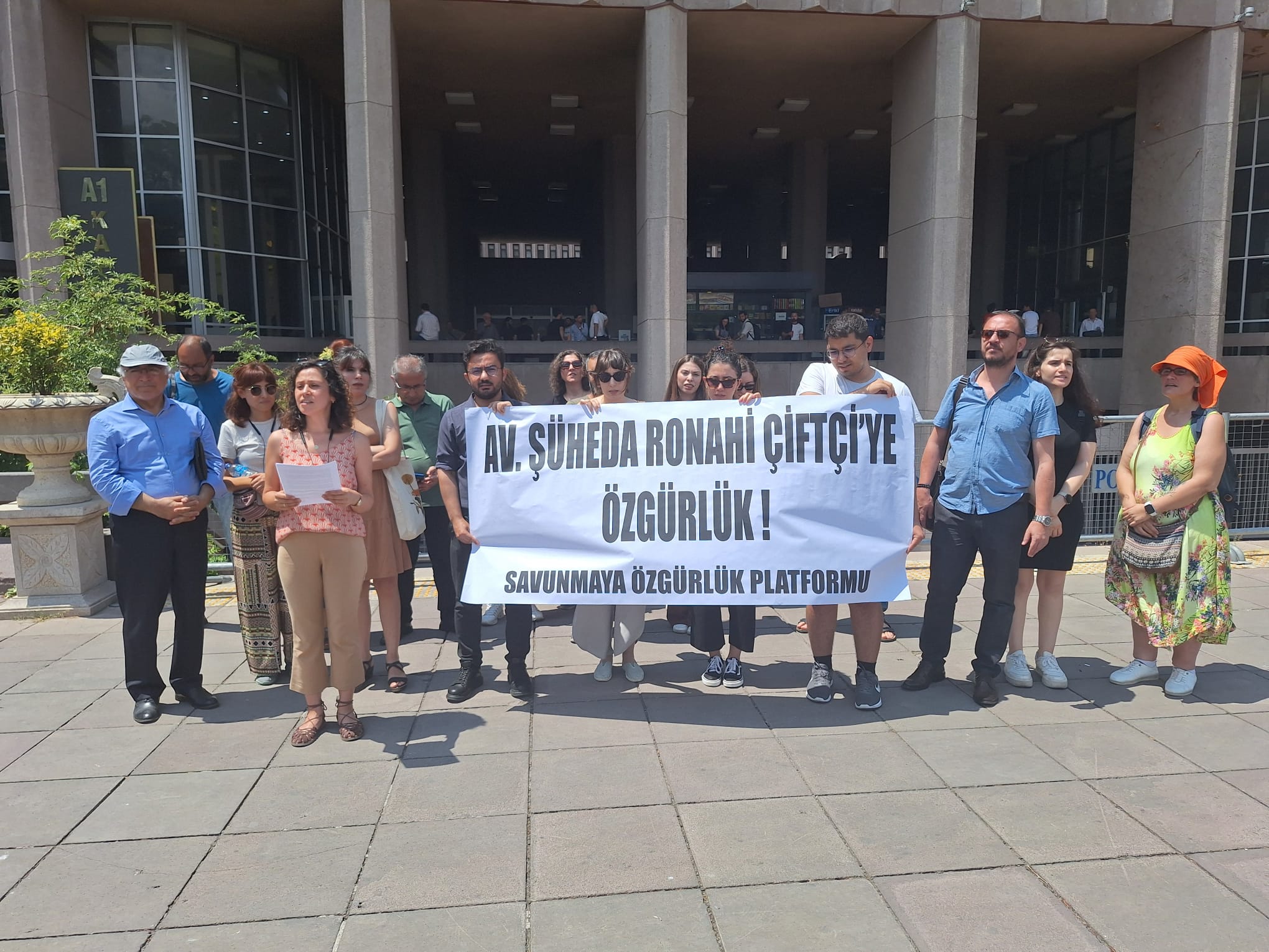 Ankara’da ve Savunmaya Özgürlük Platformu’nun bulunduğu tüm illerde Savunmaya Özgürlük Platformu bileşeni tüm kurumlar, Antalya’da 20 Şubat’ta yapılan ev baskınında gözaltına alınıp tutuklanan Avukat Şüheda Ronahi Çiftçi için eşzamanlı basın açıklamaları yaptı. Ankara’da Adliye önünde gerçekleştirilen basın açıklamasını Çağdaş Hukukçular Derneği Ankara Şube Yöneticisi Gizem Özden okudu.