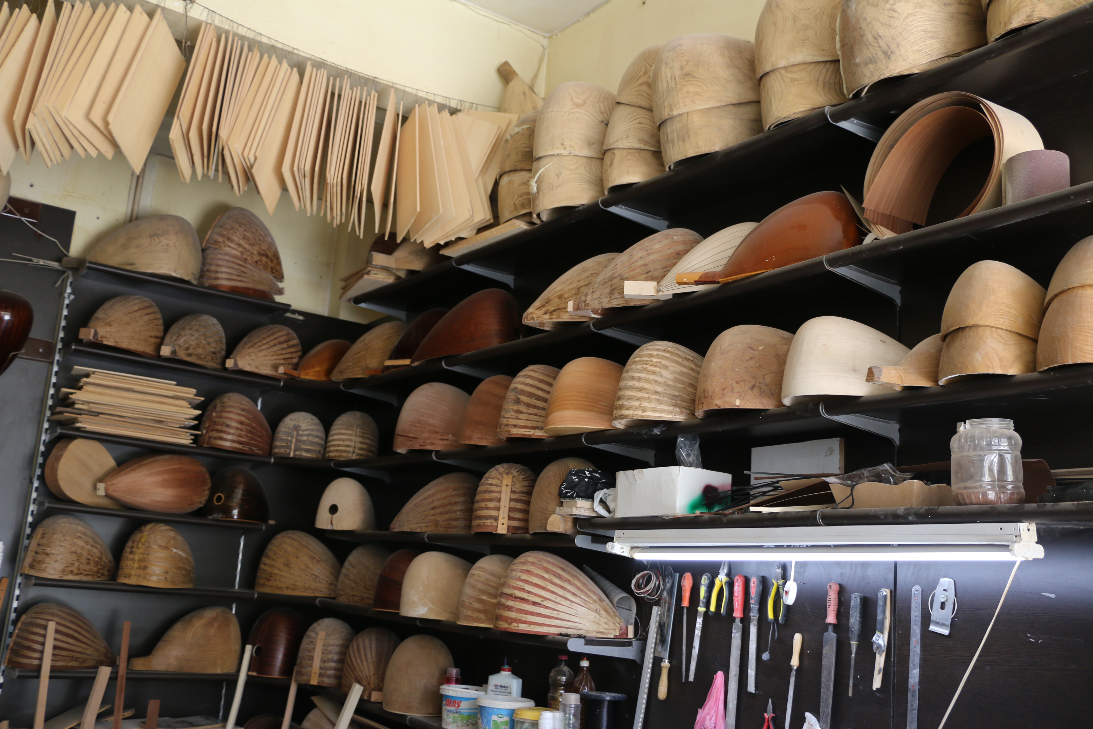 “Oyma tekne tek parça ve içi temiz olduğu için daha iyi ses veriyor. Ama tabi ki bunların hiçbirinde bu tekneden iyi ses çıkar bir şey yok. Ustanın yapması ile şekilleniyor. Her şey kapağa bağlı. Örneğin teknenin yüzde 40 etkisi varsa, kapağın yüzde 60 etkisi var. Tabii iyi bir yapımla. Kapağın, sapın iyi oturtulması, sazın tesviyesi, perdelerin düzgün bağlanması, burguların düzgün açılması bunların hepsi etken. Yaprak tekneleri ağırlıklı İstanbul’dan alıyoruz. Gerek dut gerek kestane olsun oyma tekneler var. Kelebek oyması var. Akça ağaç dediğimiz onları da Samsun’dan alıyoruz. Samsun kültürel anlamda çok uygun bir yer değil ama orada fındık dışında başka yapacak işleri olmadığı için Malatya’dan, Elazığ’dan ağaçlar alıp oyma tekniğini öğrenmişler.”