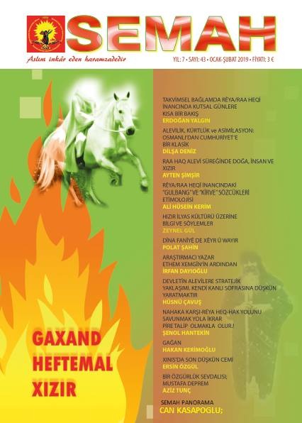 PİRHA – Demokratik Alevi Federasyonu (FEDA) tarafından her iki ayda bir düzenli olarak yayımlanan ‘Semah Dergisi’nin 43. sayısı çıktı. Ocak-Şubat sayısında ağırlıklı olarak “Gaxan, Heftémal ve Xızır” konuları işlendi.