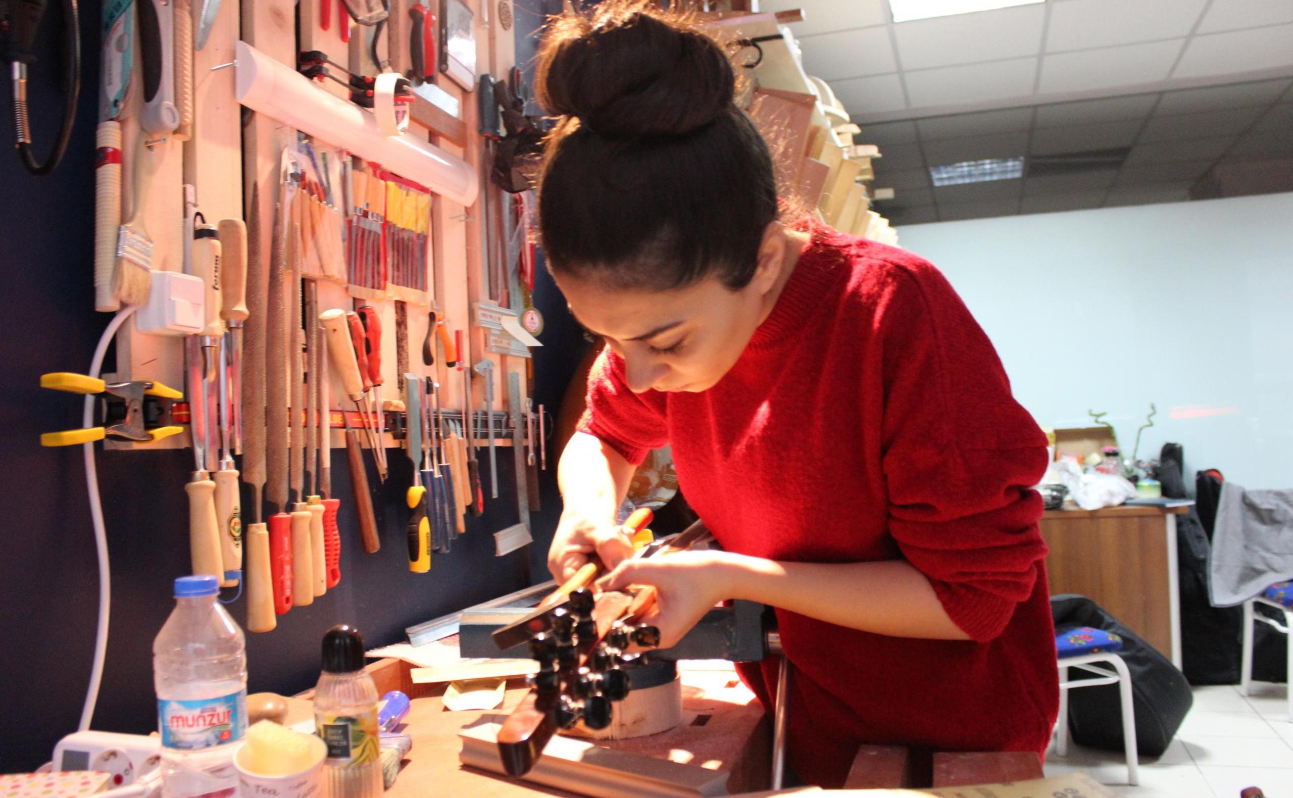 Bu alanda daha çok kadınların olmasını istiyorum. Çünkü enstrüman yapımı deyince erkekler geliyor insanın aklına tabi ki bu algıyı yıkmak istiyoruz biraz. Tabi ki erkeklere de ihtiyacımız var, onlarda olacak aslında ayrım olmamasını istiyoruz ama kadınlarında bu alana yönelmesini istiyoruz.