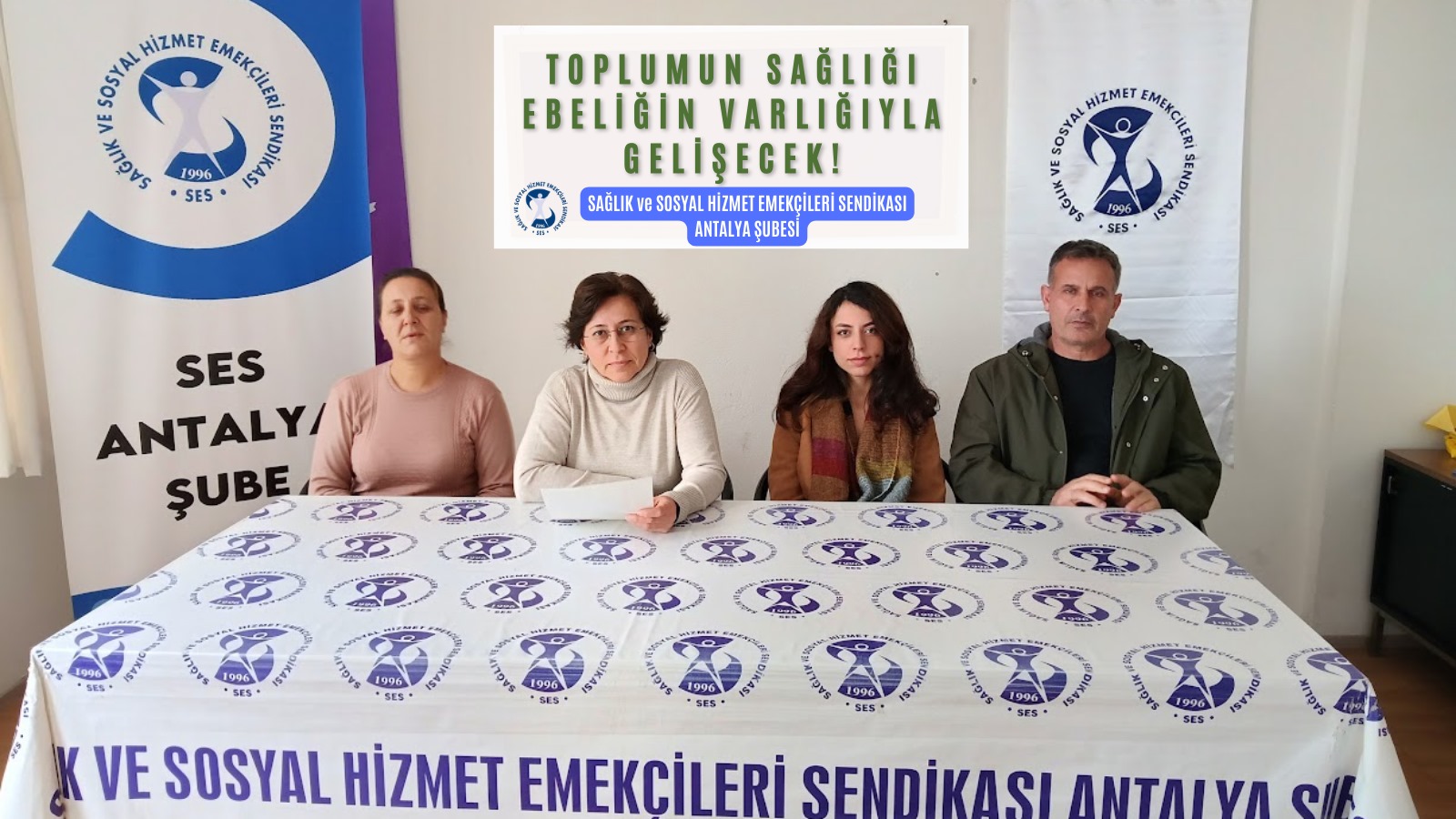 Sağlık ve Sosyal Hizmet Emekçileri Sendikası (SES) Antalya Şubesi 5 Aralık 2024 tarihinde yürürlüğe giren Ebelik Yönetmeliğine dair basın toplantısı yaptı.