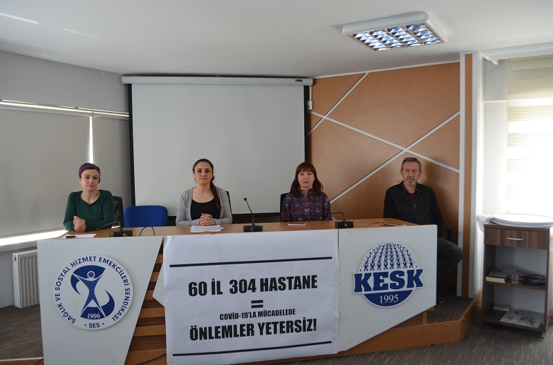 PİRHA- Sağlık ve Sosyal Hizmet Emekçileri Sendikası (SES) Genel Merkezi, “Hastaneler COVİD-19 salgın yönetimine hala hazır değil” açıklaması yaptı. SES, Bakanlığa acil önlem alınması için çağrı yaptı.