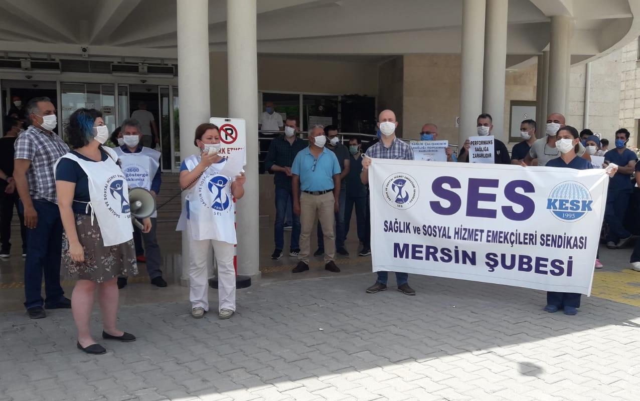 PİRHA- SES Mersin Şubesi, sağlıklarından da, haklarından da vazgeçmeyeceklerini belirterek, Sağlık Bakanlığı’nı alkışlarla protesto etti.