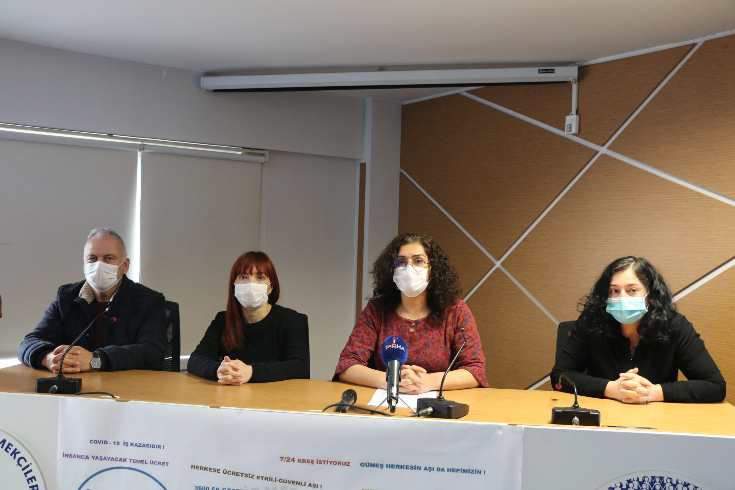Pandeminin başlarında alkışlanan biz sağlık ve sosyal hizmet emekçileri vergi yükünün, enflasyon oranlarının altında ezildik ve ezildikçe yoksullaştık. Pandemi koşullarında izinsiz, dinlenmeksizin virüs yüküyle mücadele ederken tükeniyor ve her gün ölüyoruz. İnsanca yaşayacak, meslek riskimizi karşılayacak, tek kalemde, yoksulluk sınırının üstünde temel ücret diye isyan edip çığlık attıkça performans ve ek ödemeler bizlere lütuf olarak sunuldu.