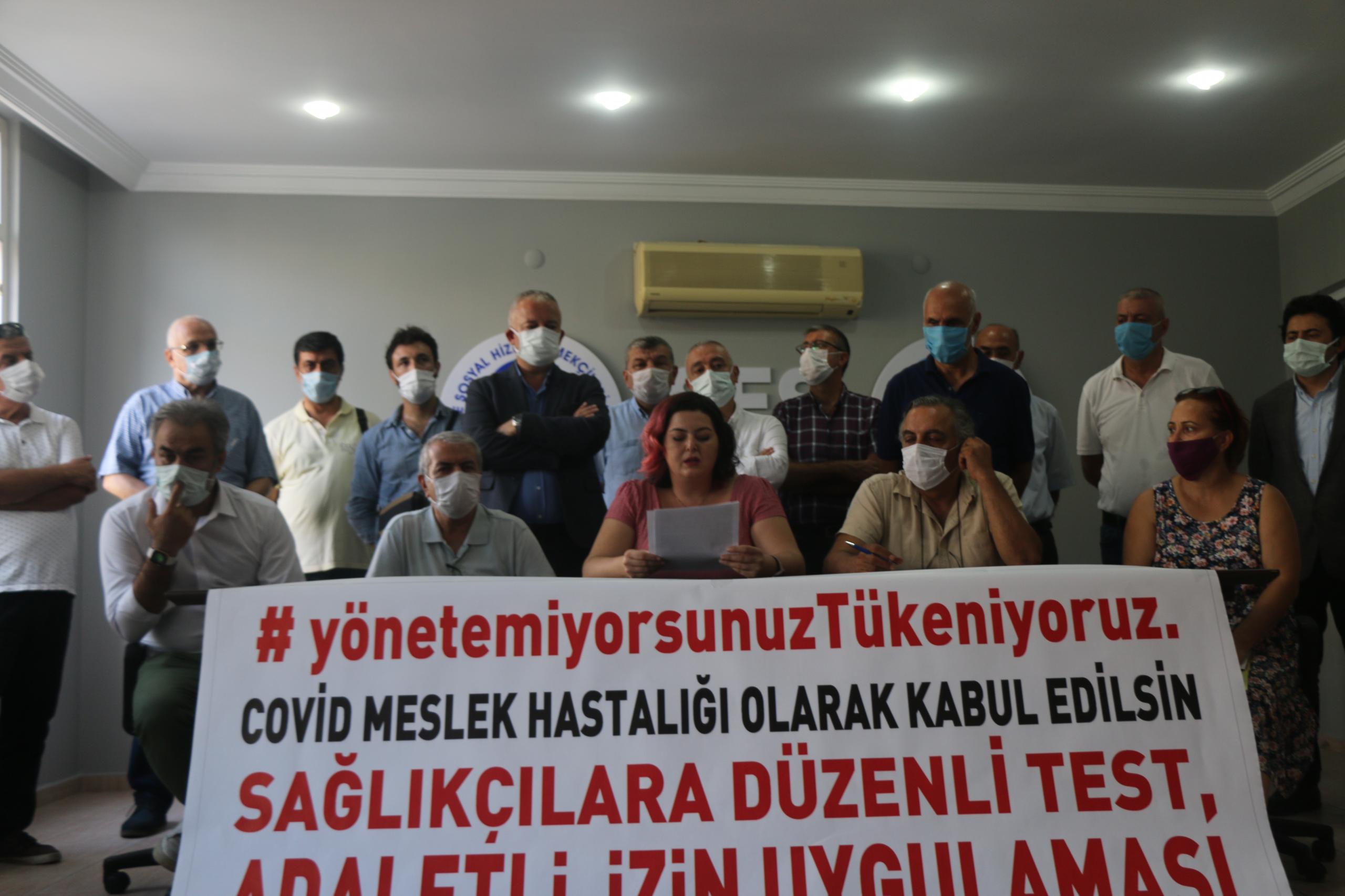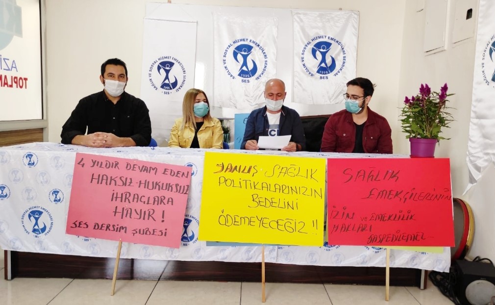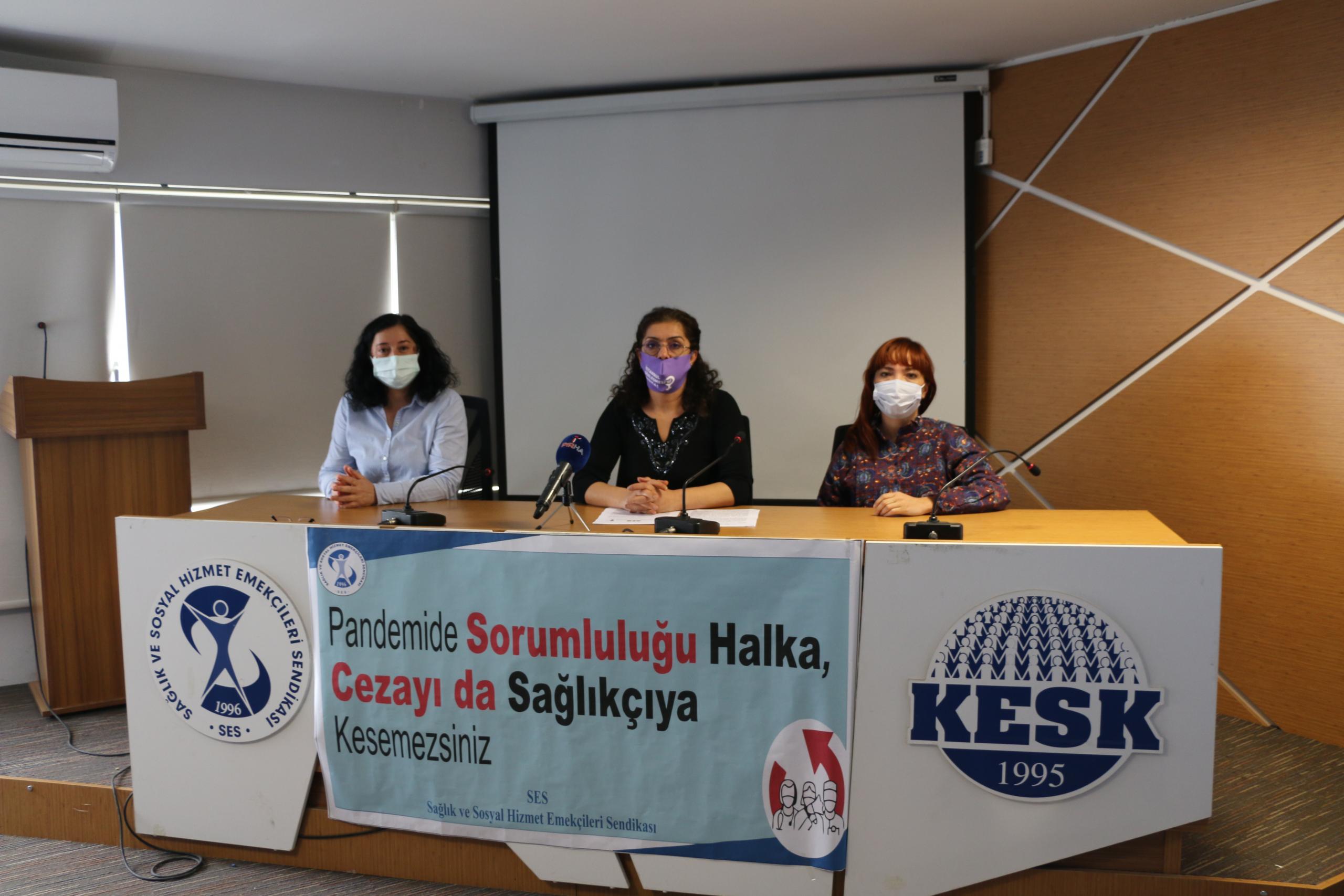 Sağlık ve Sosyal Hizmetler Sendikası (SES), sağlık emekçilerinin izin, emeklilik ve istifa haklarının ellerinden alınması ve taleplerine dair bir çok kentte eş zamanlı basın açıklaması yaptı.