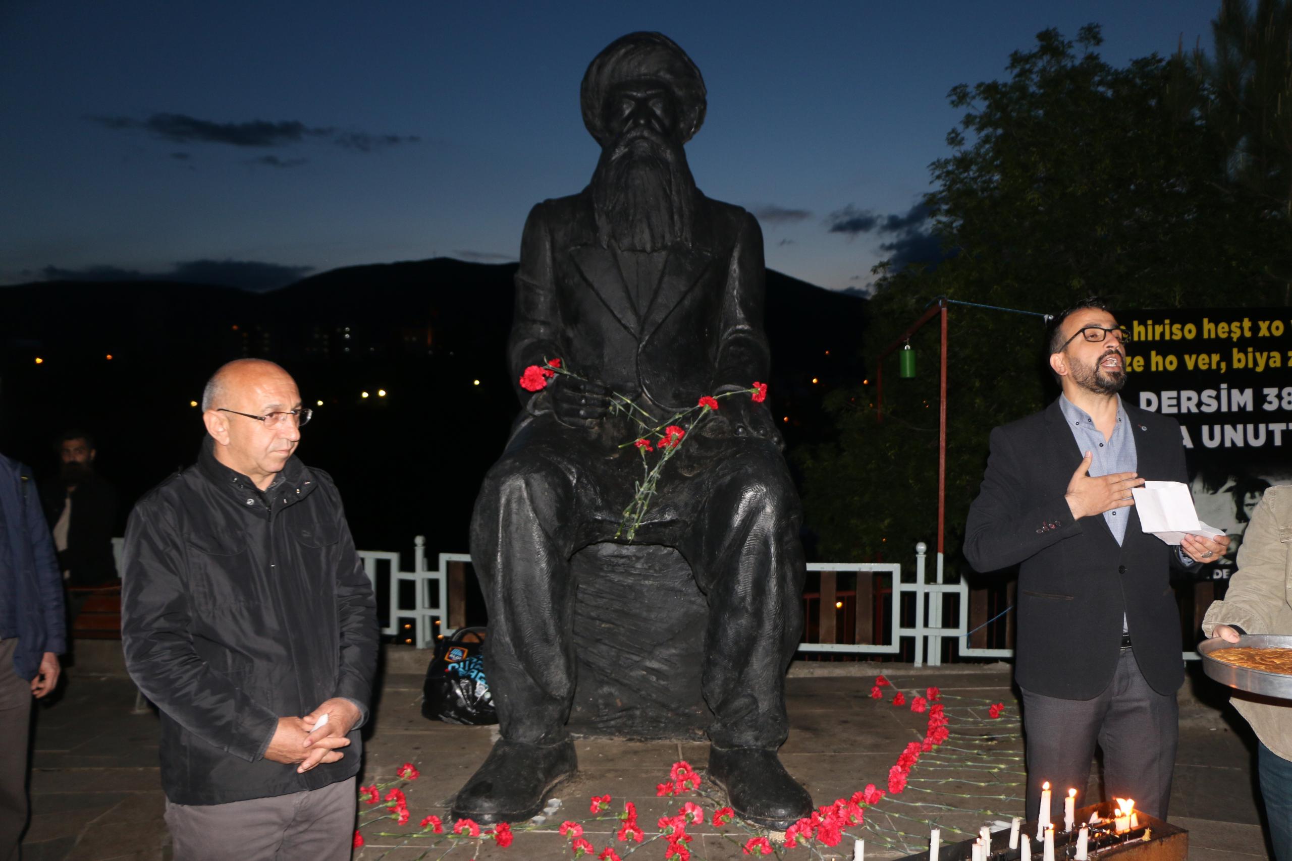 Seyit Rıza Meydanı’nda yapılan anmaya HDP Dersim Milletvekili Alican Önlü’nün yanında çok sayıda siyasi parti ve kurum temsilcileri, sanatçılar Metin Kahraman ve Zeynep Kılıç katıldı. Seyit Rıza heykelinin önünde çılalar yakıldı.