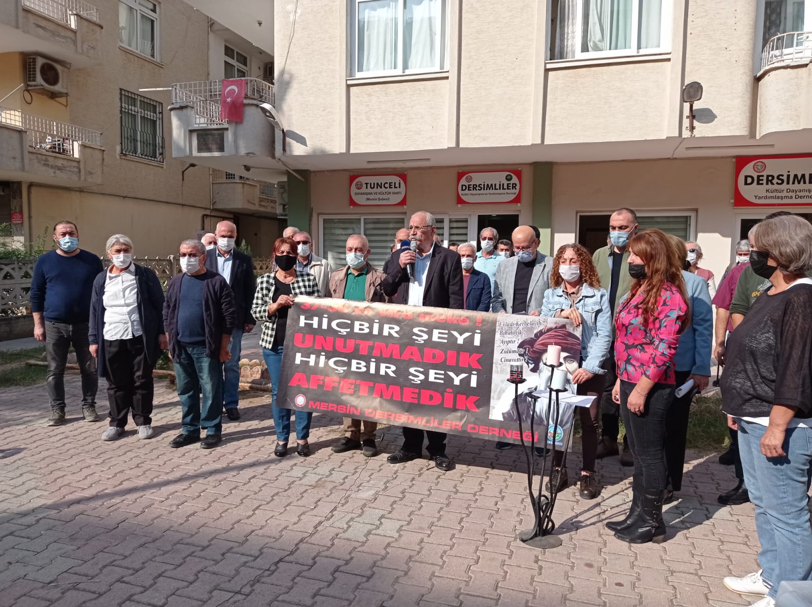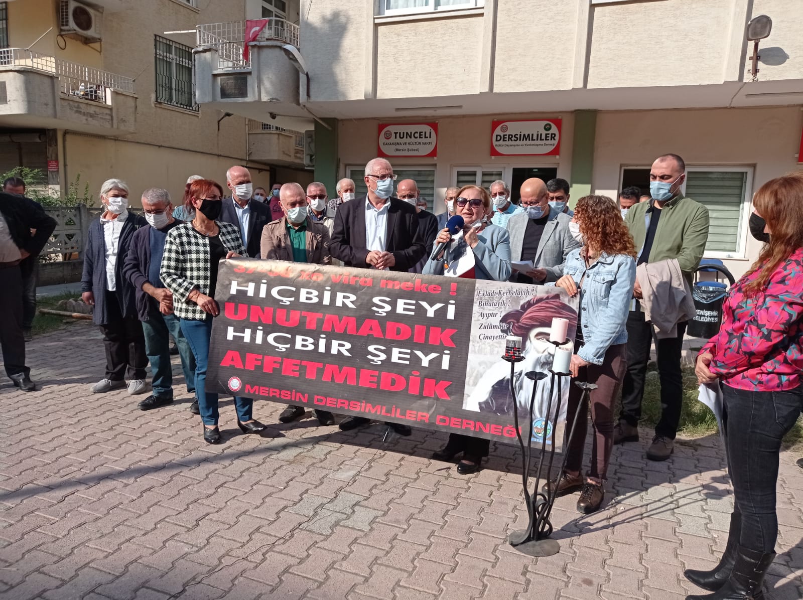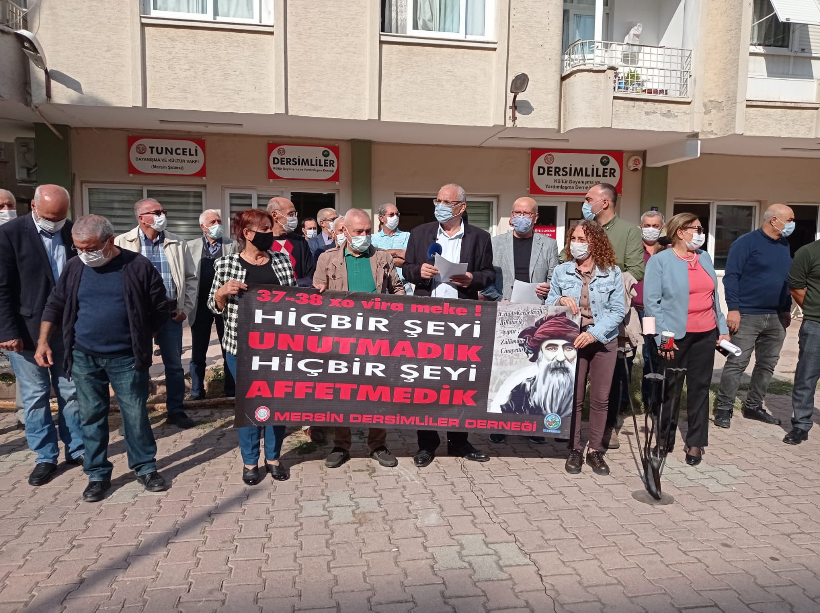 Dersimliler Derneği de dernek bahçesinde açıklama yaptı. Dernek Başkanı Hasan Tanrıkut tarafından yapılan açıklamada, “Seksen üç yıldır kapanmayan yara; Seyitlerimizin mezar yerleri nerede?” diye sorularak, şunlar dile getirtildi: