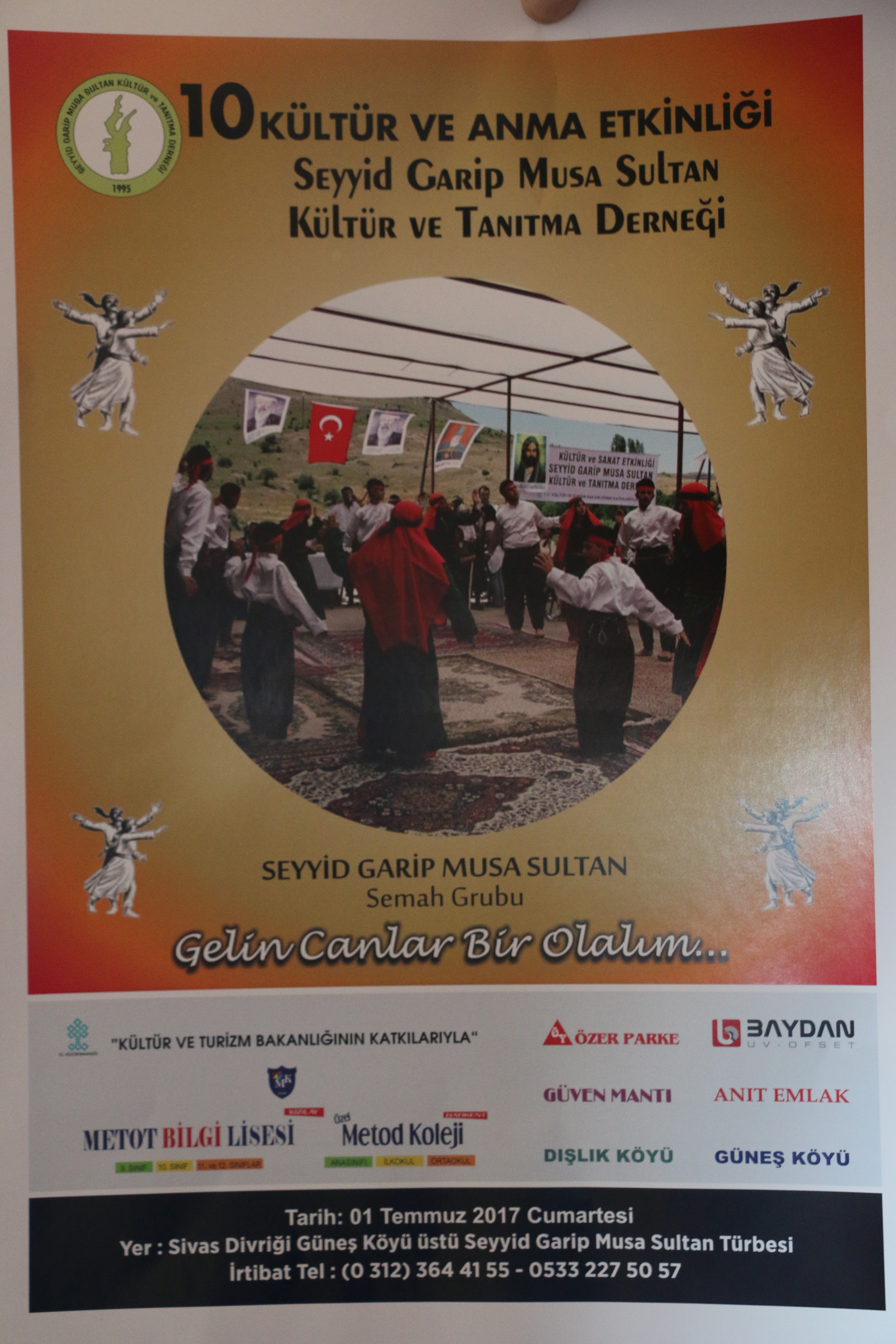 1 Temmuz Cumartesi günü yapılacak olan anma etkinliği Sivas’in Divriği ilçesine bağlı Güneş Köyü üstünde bulunan Seyyid Garip Musa Sultan türbesinde gerçekleştirilecek.