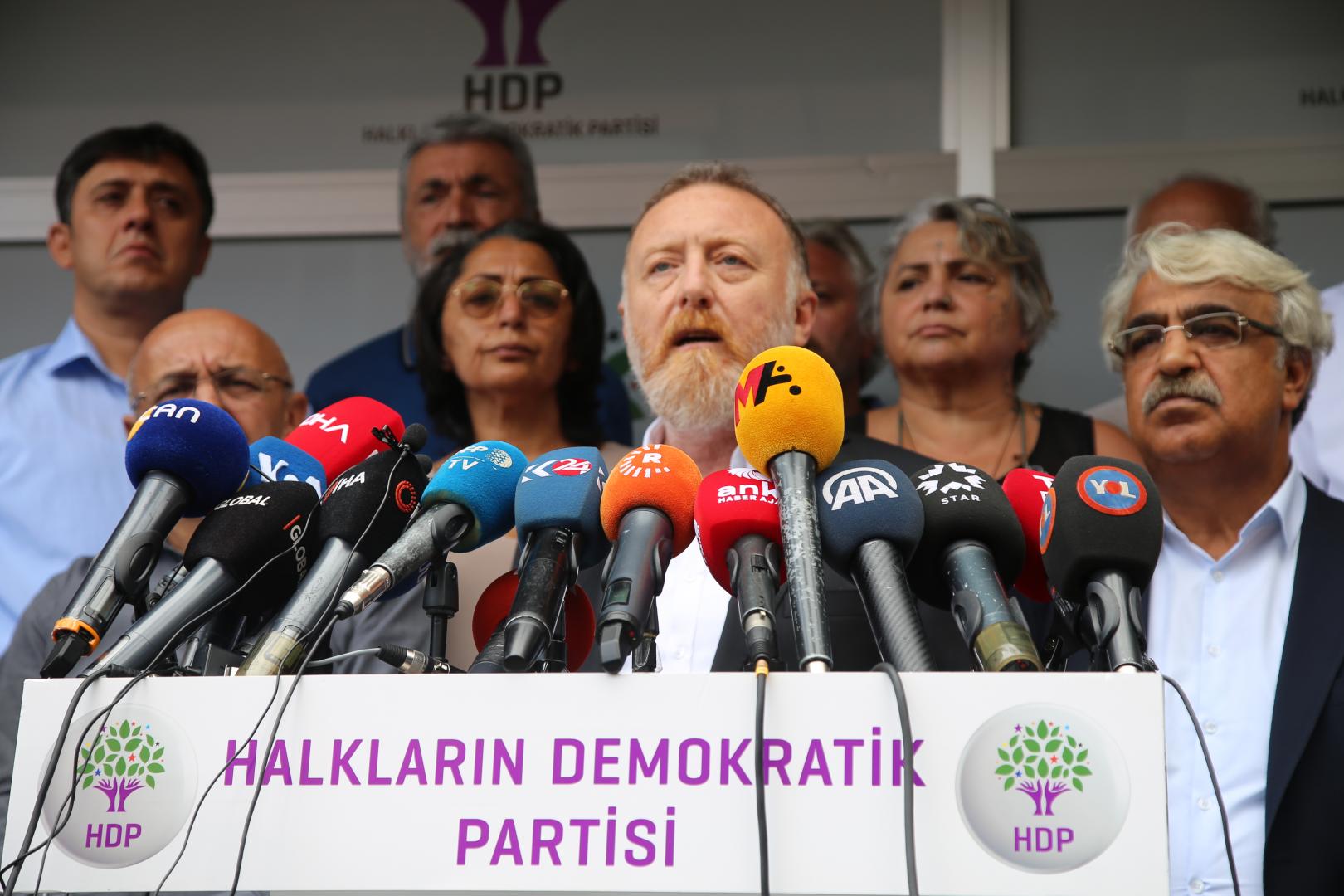 HDP’li Van, Diyarbakır ve Mardin belediyelerine atanan kayyumlar sonrası HDP Eş Genel Başkanı Sezai Temelli, MYK Üyeleri ve milletvekilleriyle birlikte genel merkez binasında açıklama yaptı.