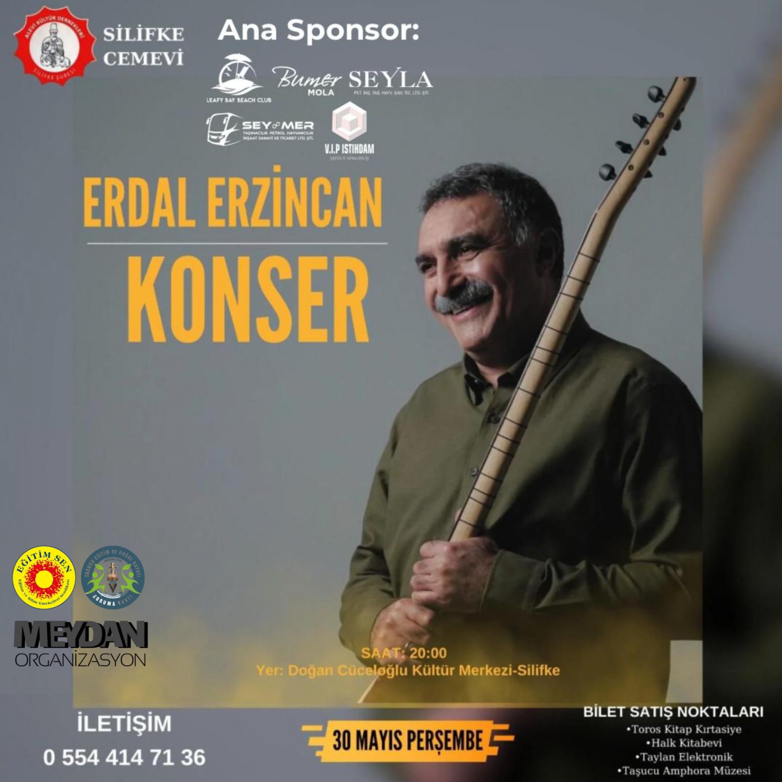 Erdal Erzincan’ın vereceği konser, yarın (30 Mayıs) saat 20.00’de Silifke bulunan Doğan Cüceloğlu Kültür Merkezi’nde gerçekleşecek.