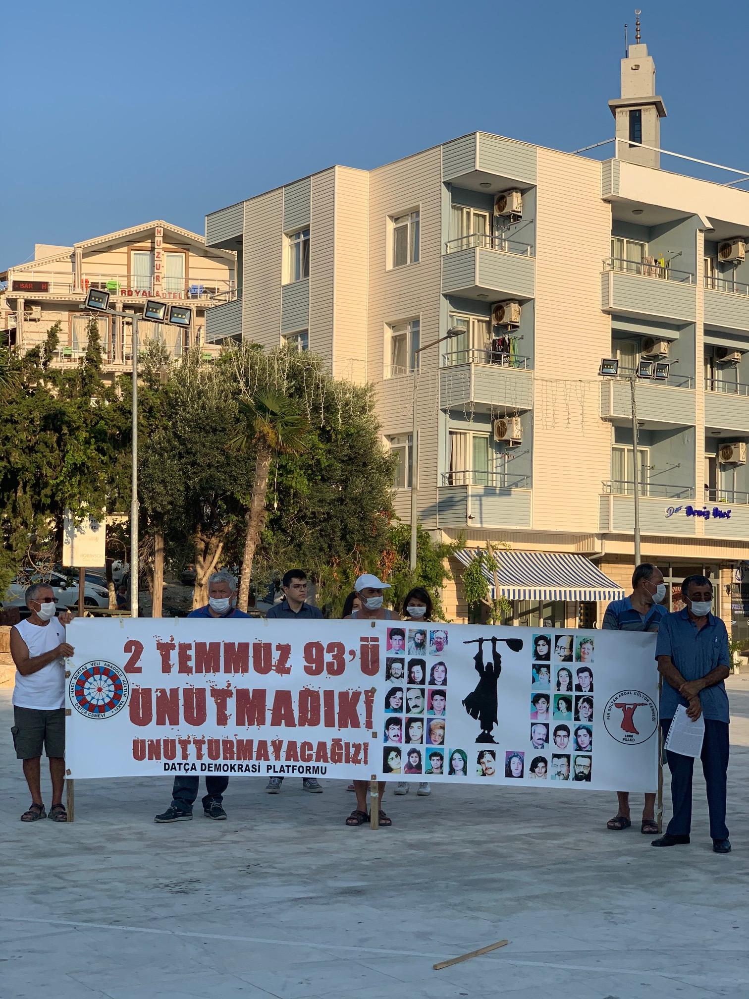 2 Temmuz Sivas Katliamı’nın 27. Yılı sebebiyle Hacı Bektaş Veli Anadolu Kültür Vakfı Datça Şubesi Cemevi ve Pir Sultan Abdal Kültür Derneği Datça Şubesi’nin öncülüğünde Datça Demokrasi Platformu Cumhuriyet Meydanı’nda basın açıklaması yaptı.