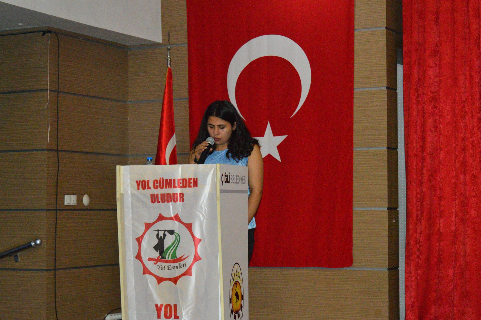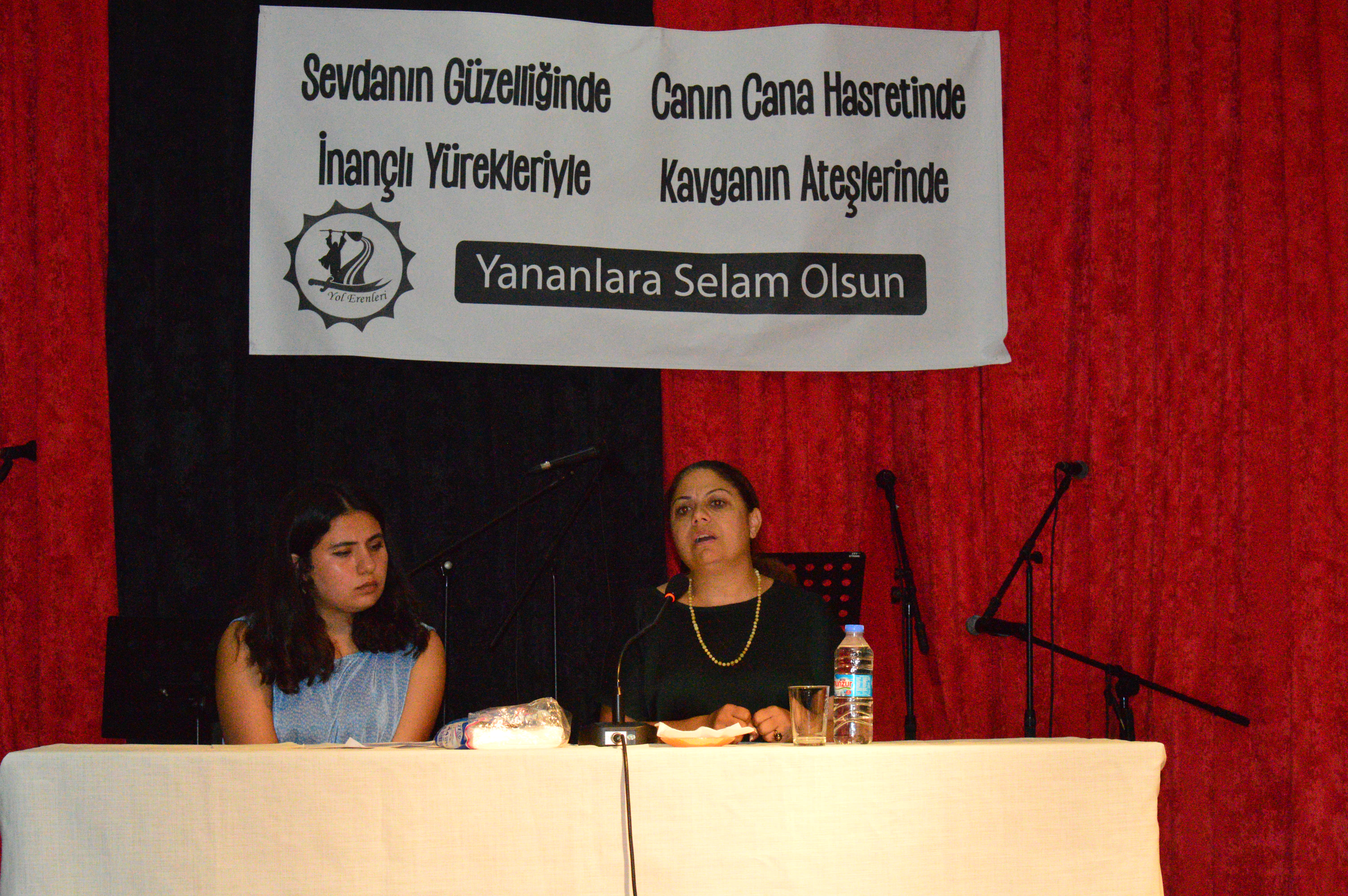 Daha sonra Yol Ereneleri adına kısa bir konuşma yapan Elif Kavil, Sivas Katliamı’nın bir tesadüf olmadığını planlı bir komplo olduğunu söyledi. Kavil, 1980 sonrası köylerden kentlere göçlerin artmasıyla kentlerde inançlarını var etmek isteyen Alevilere karşılarında olan gücün izin vermediğini belirtti.