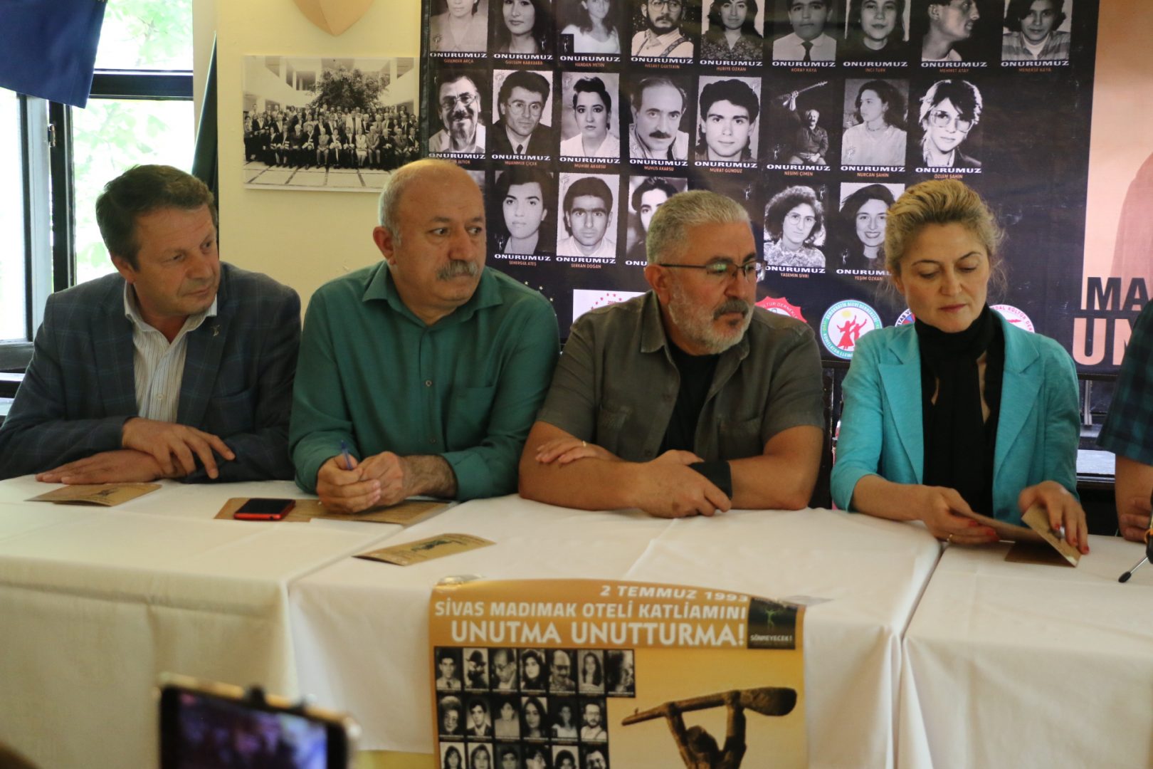 2 Temmuz 1993 Sivas Madımak Katliamı özünde sadece Alevilere karşı değil; ezilen, ötekileştirilen, dışlanan, yok sayılan bütün toplumsal kesimlere karşı yapılan bir katliamdır. O yüzden ezilen, ötekileştirilen, dışlanan ve yok sayılan herkesi zulme karşı ortak mücadeleye çağırıyoruz. Gelin hep birlikte 2 Temmuz’da tek adam rejimine, faşizme, ırkçılığa, gericiliğe ve baskı politikalarına karşı laikliği, özgürlüğü, eşitliği, adaleti, barışı, demokrasiyi ve halkların kardeşliğini savunarak katliamda yitirdiğimiz canlarımızı analım. Gelin 2 Temmuz’da acılarımızı ortaklaştıralım. Acılarımızı paylaşarak azaltalım. Gelin hep birlikte dayanışmayı ve mücadeleyi büyütelim. Büyütelim ki bize bu acıları yaşatanlardan hesap sorabilelim. Bütün halkımızı bir daha böyle acıları ve katliamları yaşamamak için 26. yılında Sivas Madımak Katliamı’nda yitirdiğimiz canlarımızı meydanlarda ve alanlarda anmaya davet ediyoruz. Önderimiz Pir Sultan Abdal’ın ‘Dönen Dönsün Ben Dönmezem Yolumdan’ şiarıyla Sivas Madımak Katliamı’nın 26. yılında Sivas Madımak Oteli önünde buluşalım.