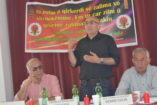 Çelik’in ardından söz alan FEDA Avrupa Eşbaşkanı Veli Kaya ise Alevilerin tarihten bugüne devlet zihniyetinin hedefinde olduğunu söyledi.