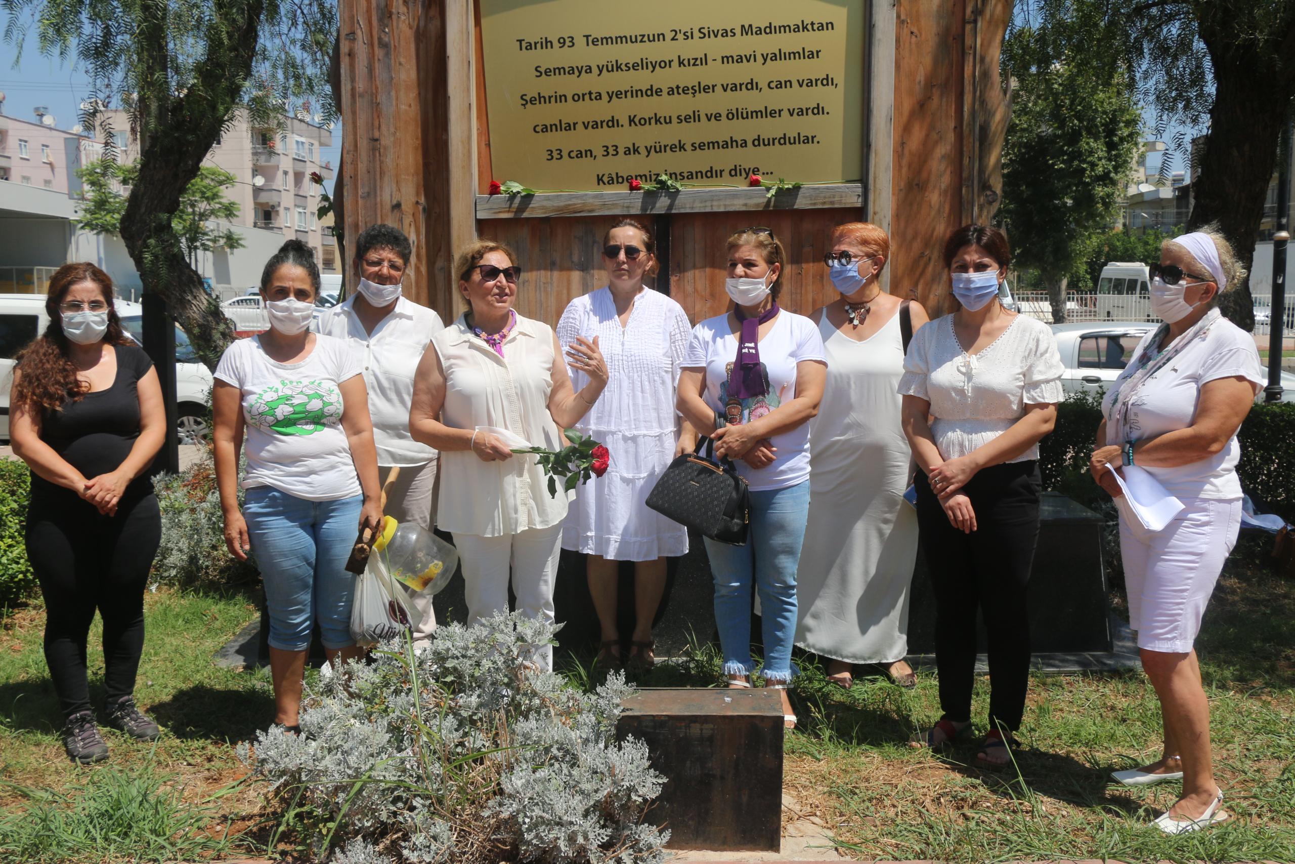 27 yıl önce Sivas Madımak Oteli’nde katledilen 33 aydın için birçok yerde anma yapılıyor. Mersin’de de Alevi kadınlar Madımak Parkı’nda bulunan Madımak Anıtı önünde bir araya gelerek anma düzenledi. Aysel Kılavuz’un okuduğu gülbangın ardından anmaya katılan kadınlar anıt önünde çerağlar uyandırdı.