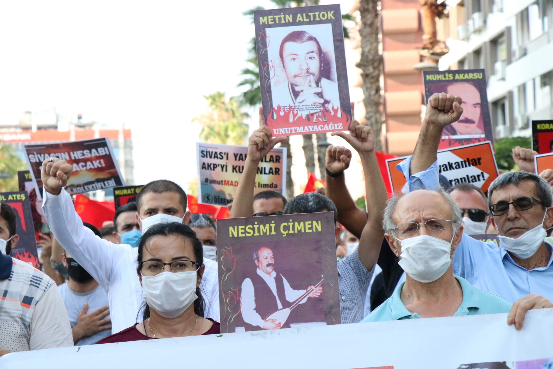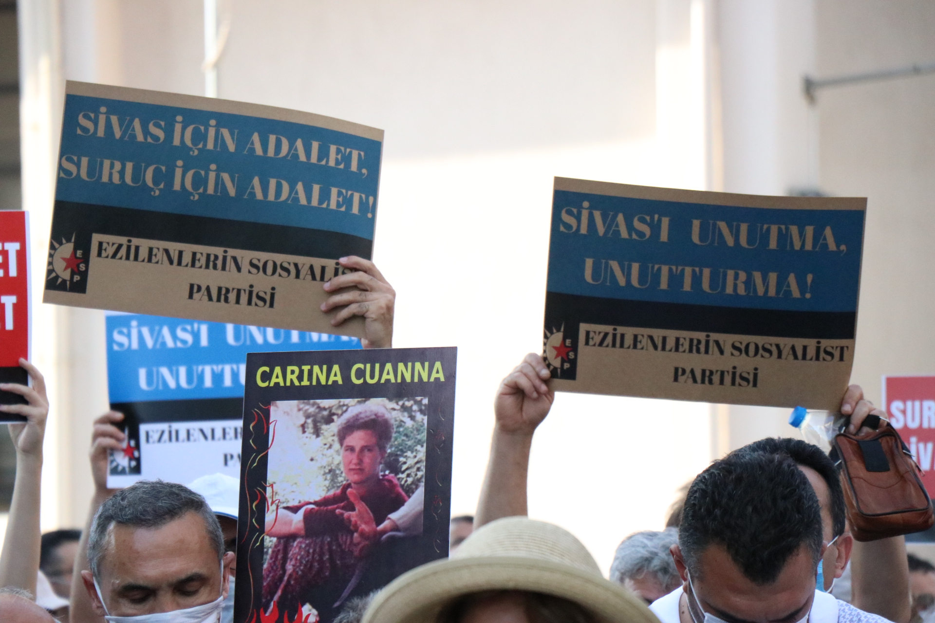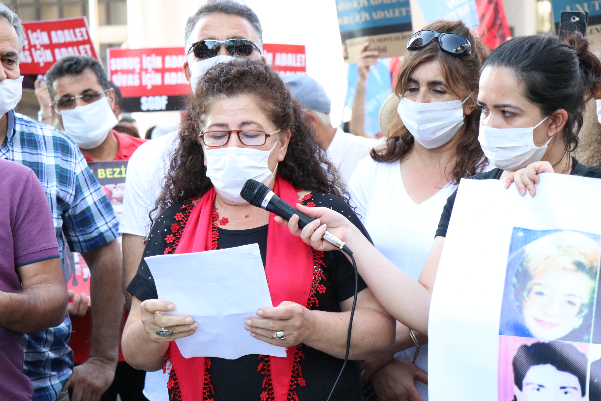 Yapılan açılmada sık sık ‘Sivas’ı yakanlar AKP’yi kuranlar- Suruç için adalet Sivas için adalet- Faşizme karşı omuz omuza” sloganları atıldı.