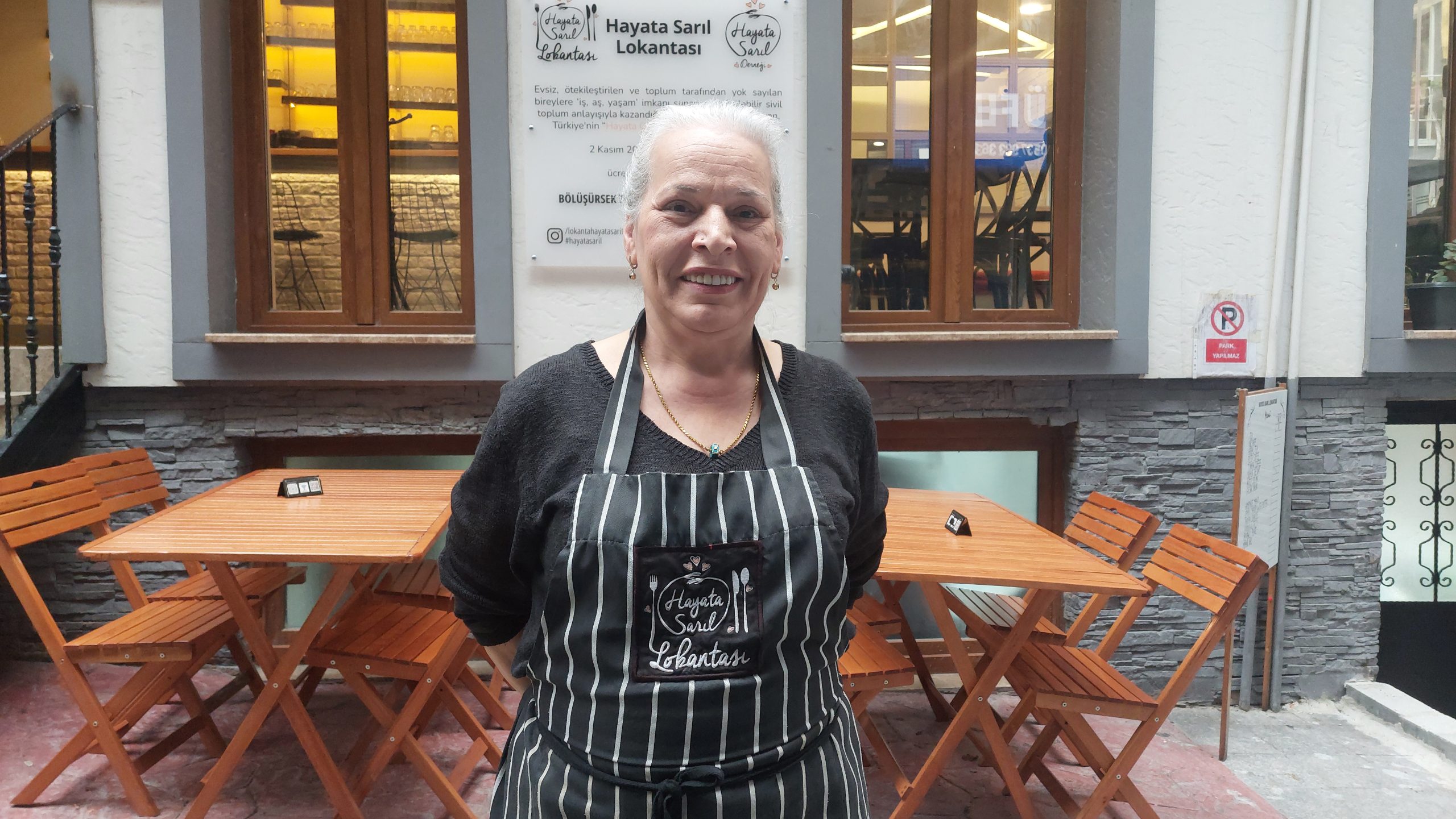Hayata Sarıl Derneği ile dezavantajlı grupları bir çatı altında toplayan Ayşe Tükrükçü, Hayata Sarıl Lokantasıyla da evsizlere sofrasını açıyor. Lokantadaki tüm işleyişin gönüllülük temelinde ilerlediğini söyleyen Tükrükçü, bugüne dek yüzlerce kişiden destek aldıklarını da belirtiyor.