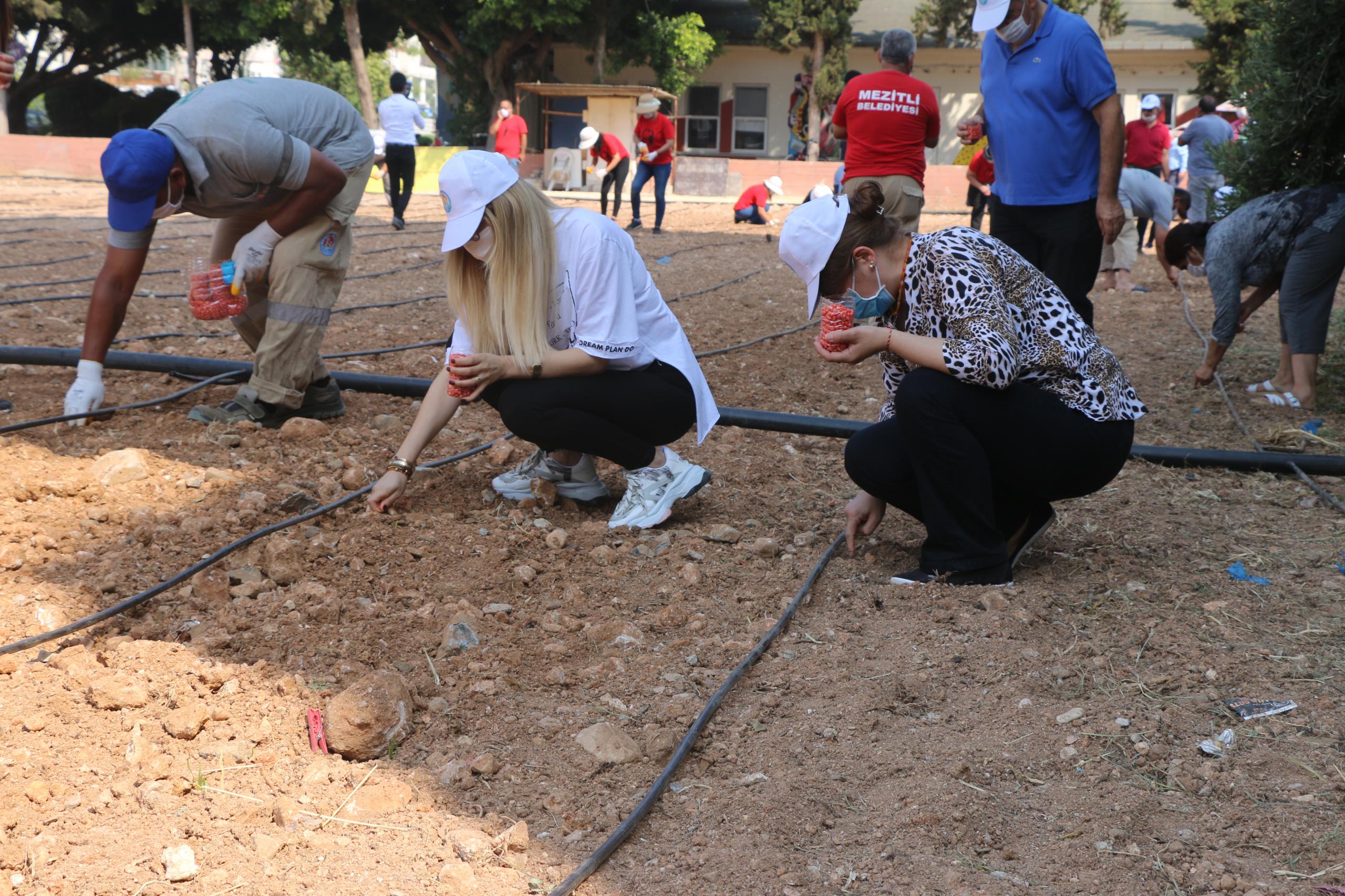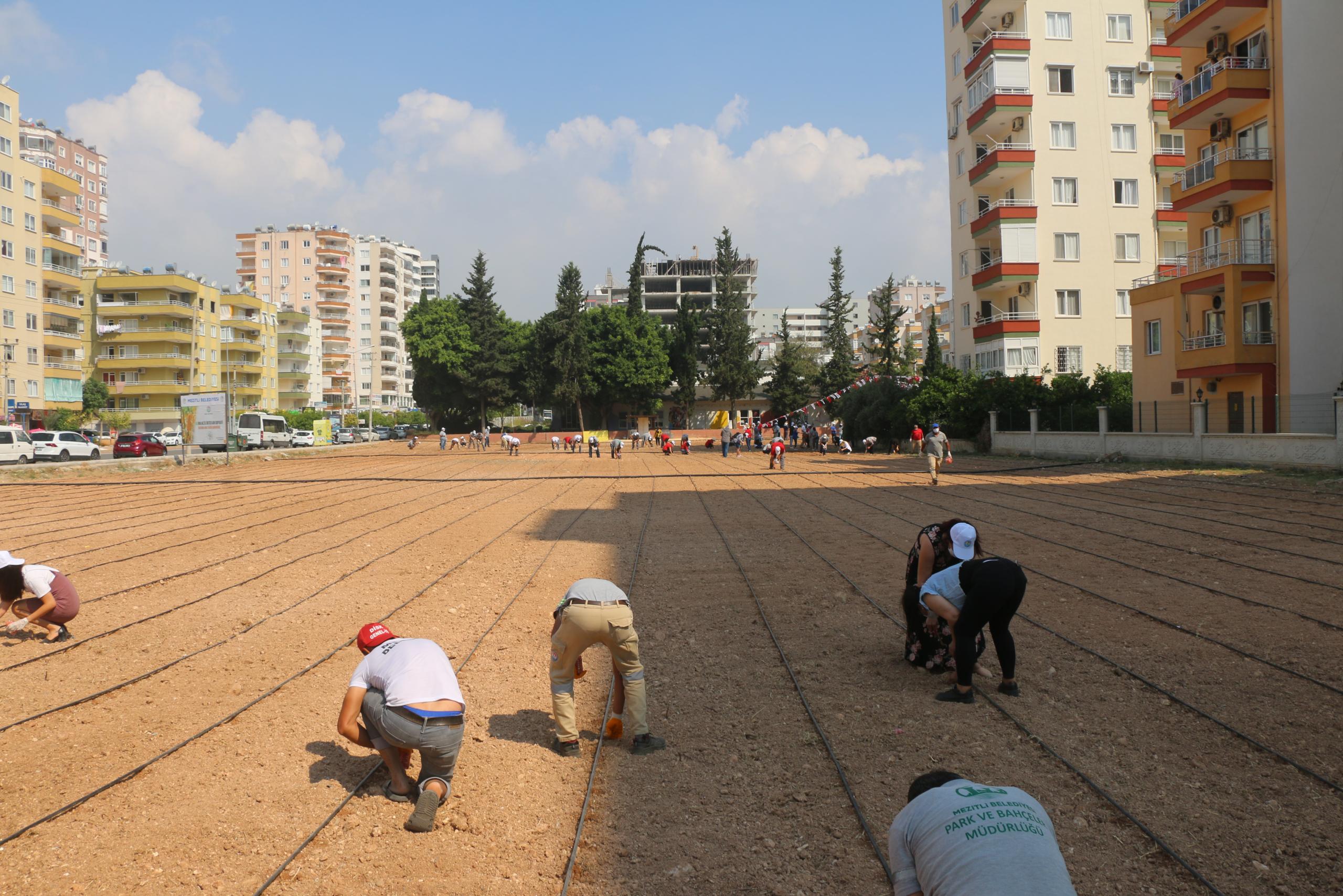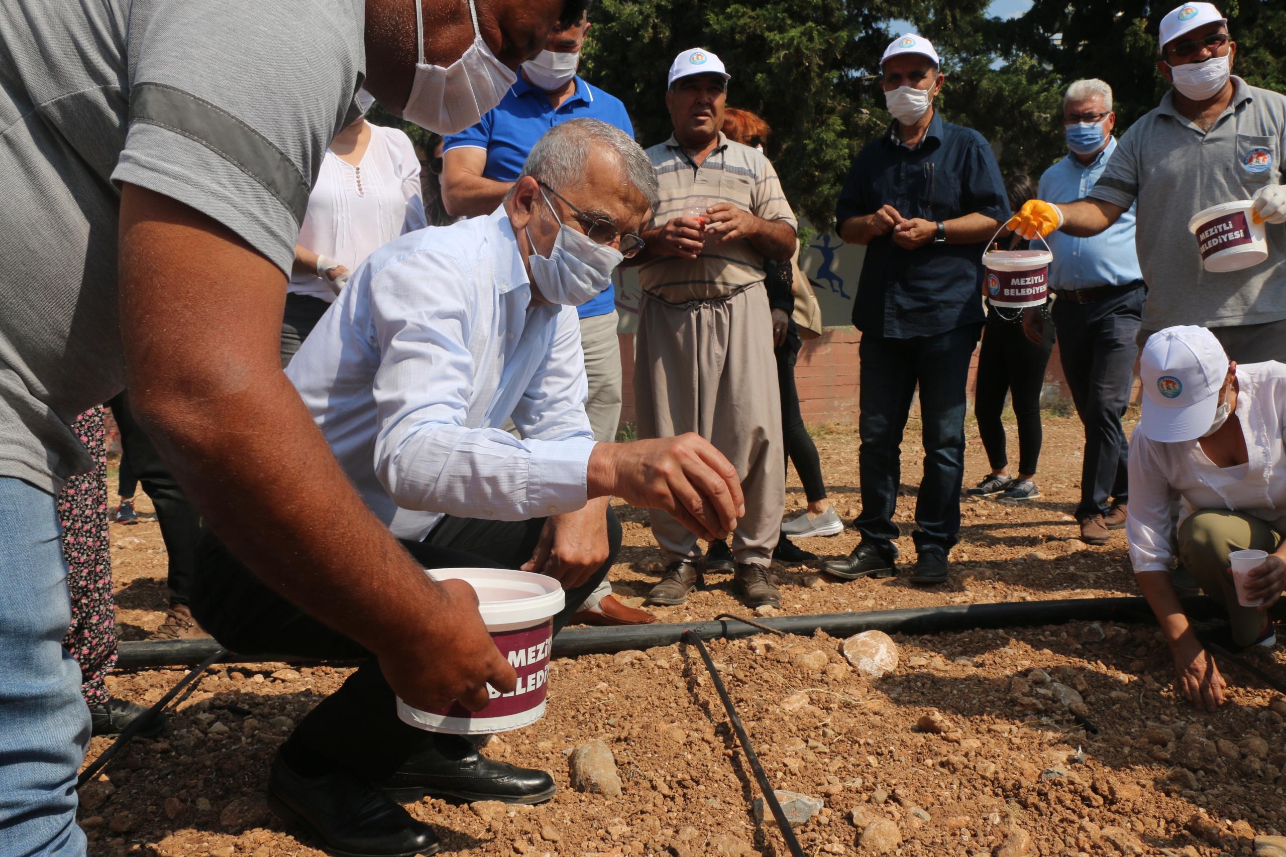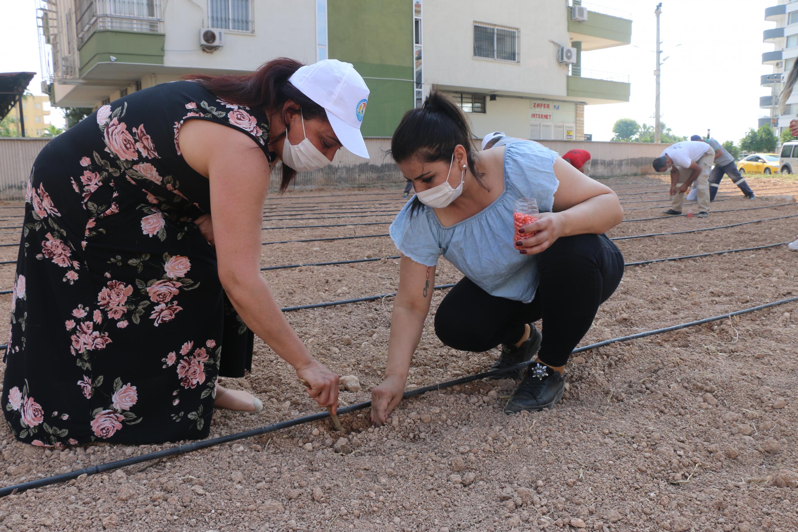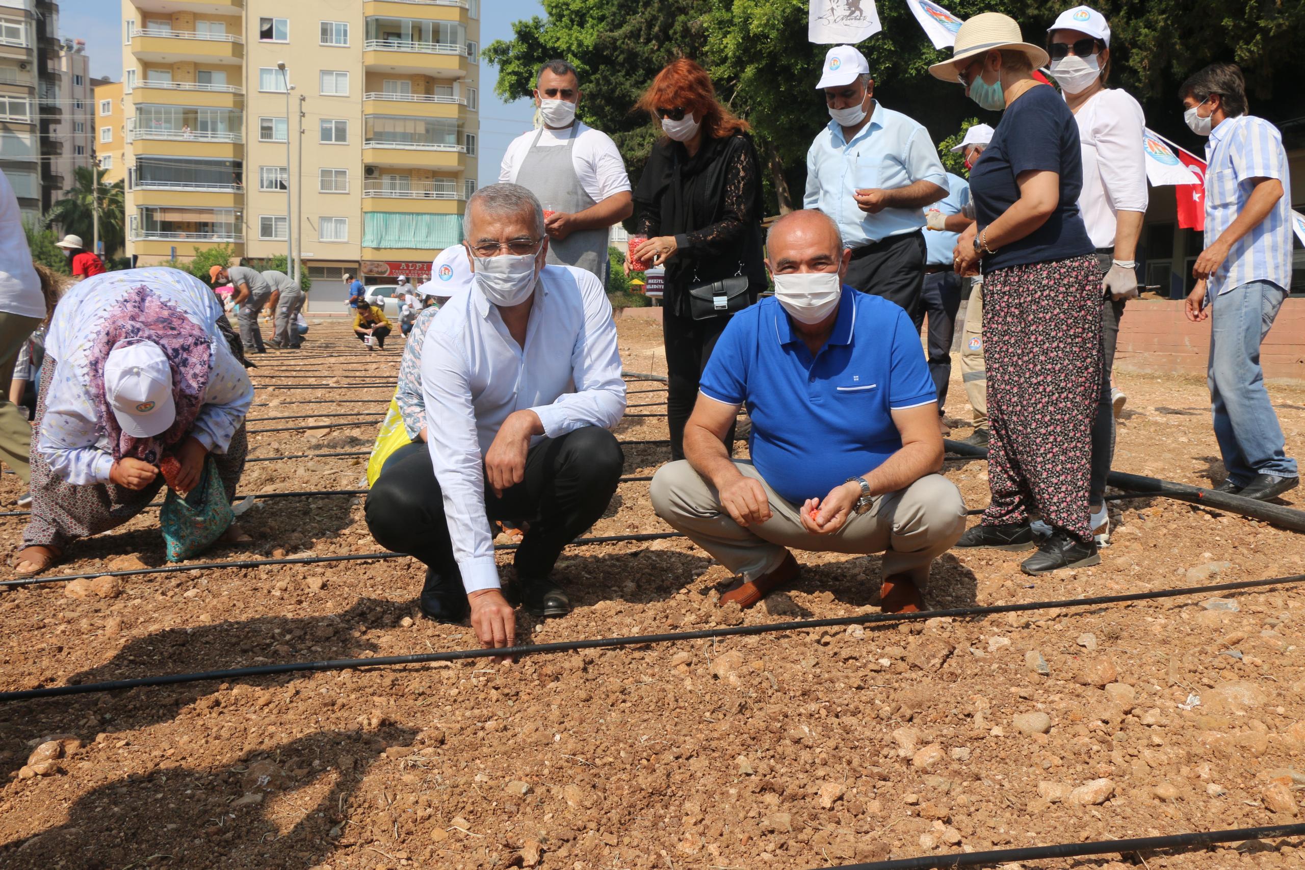 Kent tarımını geliştirmek için Mezitli Belediyesi ve Solinova Mezitli Üretici Kooperatifi, mısır ekimi yaptı.