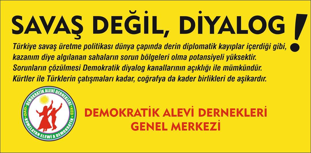 PİRHA- DAD Genel Merkezi yayınladığı açıklamada, savaş politikalarının Anadolu ve Mezopotamya topraklarında egemenlerin iktidarlarını koruma aracı olduğunu belirterek, “Reya Heq Aleviler olarak cümlesine ricamız diyalog kanallarını açık tutarak, toplumun Rusipi ve Porsipi’lerinin telkinlerine itibar etmeleridir” çağrısında bulundu.