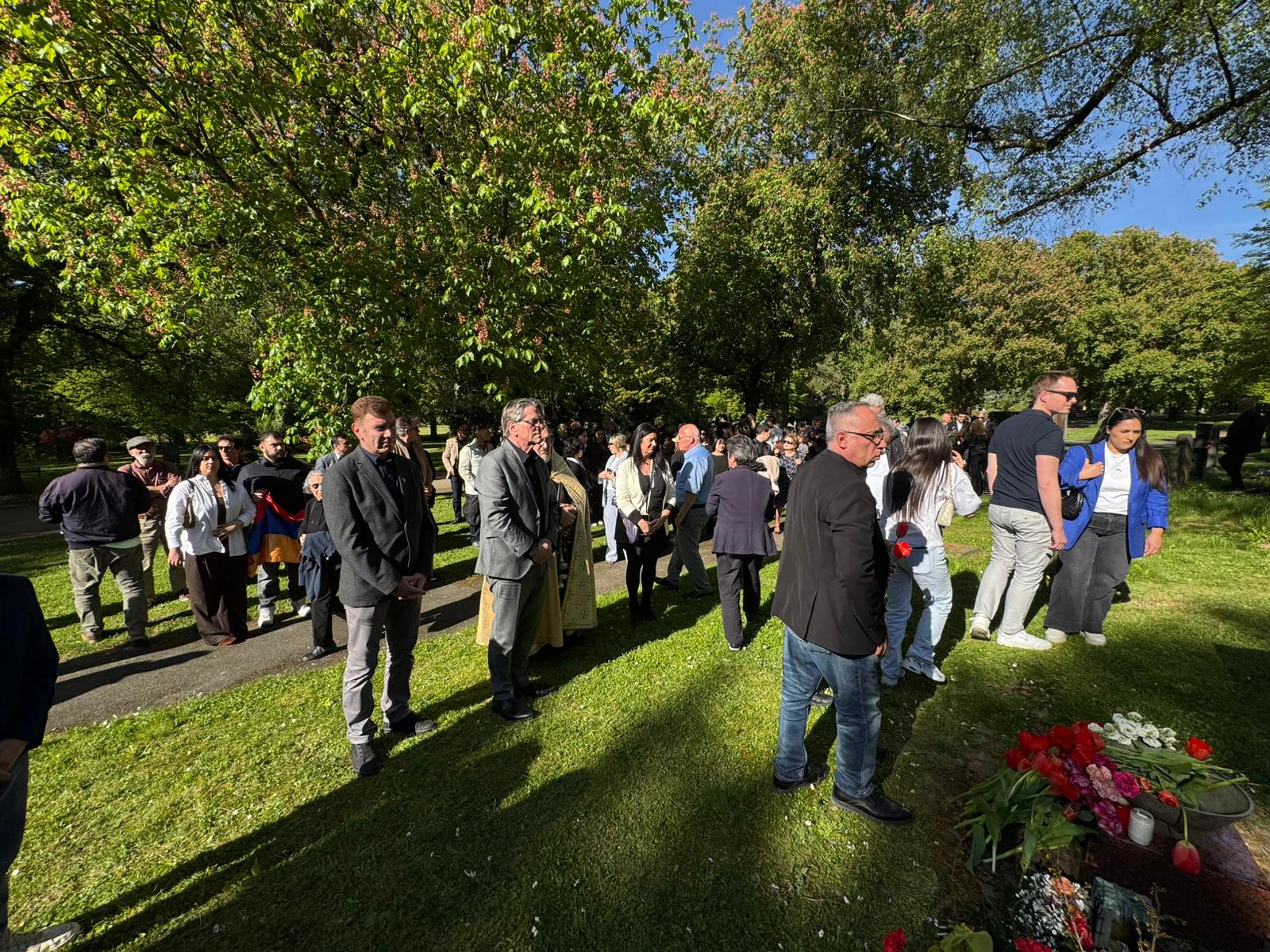 Törende konuşan Peder Dr. Diradur Sardaryan, soykırımın tarihsel gerçekliğine dikkat çekerek hafızanın diri tutulmasının önemini vurguladı. Ardından söz alan Bakan Lucha, insan hakları, adalet ve yüzleşmenin gerekliliğine işaret etti.