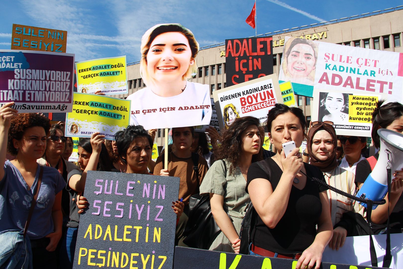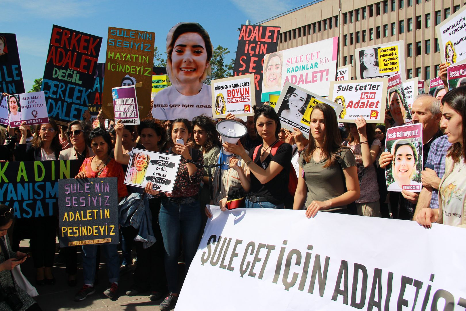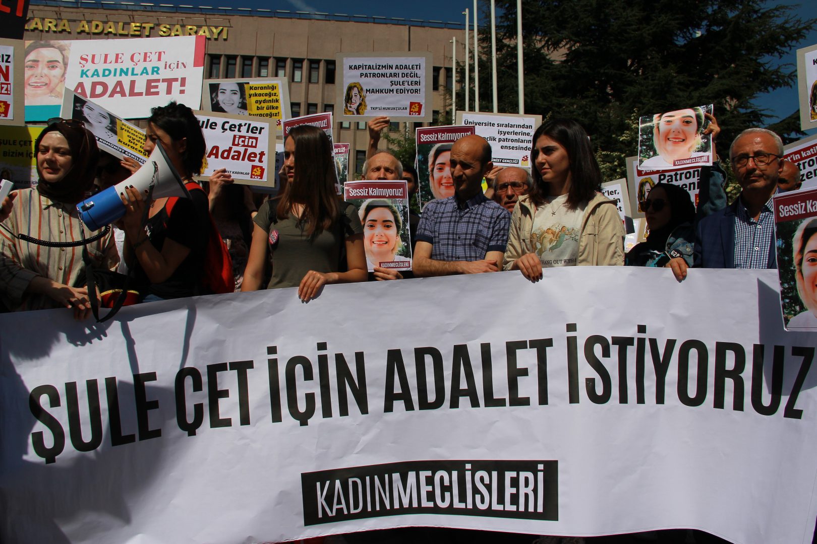 “Burada adaleti haykırmak için bulunuyoruz. Cinayetin arkasındaki şiddeti, sömürüyü, eşitsizliği gözler önüne sermek için ve katillerin gerekli cezaları almasının takipçisi olacağımızı her defasında hatırlatmak için davanın takipçisi olmaya devam edeceğiz. Şule Çet’in zanlısı patronları tutuklamak yerine onları defalarca salan, Şule Çetin üniversite okuyabilmek için çalışmak zorunda olmasını değil, babasını Şule Çet’e para gönderip göndermediğini sorgulayan hukuk sisteminin adaletini bu defa biz sorgulamak için buradayız. Kadın, çocuk, genç ve tüm insanların geleceğini garanti altına almak yerine onları geleceksiz bırakan kapitalizmi sorgulamak için buradayız. Kadınların geceleri evde olmamasını, alkol almasını, taciz ve tecavüzle meşrulaştıran nedenler olarak önümüze getiren bu gerici düzeni sorgulamak için buradayız. Şule Çet’in katilleri cezalandırılana kadar burada olmaya devam edeceğiz ama bununla da yetinmeyip kadınların ne eve hapsedilmeyeceği ne şiddetin ne de eşitsizliğin bile sözkonusu olmadığı bir ülke kuracağız. Bizim ülkemizde gençler okuyabilmek için çalışmak zorunda olmayacak. Okullarımızda iktidarın, rektörün şiddeti değil yaratıcılık olacak. Biz bu umudu her geçen gün daha da büyütüyoruz. Bize iyi, güzel herhangi bir şey vaat edemeyecek bu düzen yıkılacak, hayallerimiz özgür kalacak. Şule Çet’ler, Rabia Nazlar yaşayacak.”