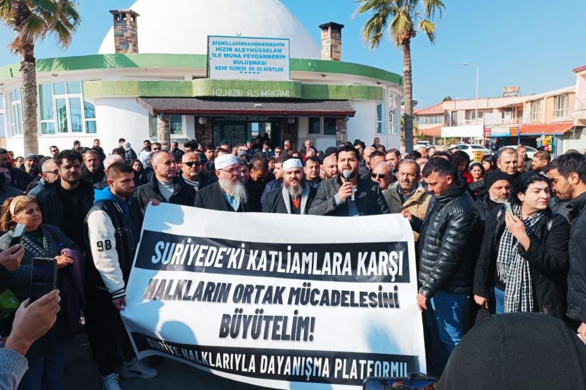Suriye Halklarıyla Dayanışma Platformu, Hatay’da Hızır Ziyareti karşısında Suriye’de Alevilerin katledilmesine tepki göstermek için basın açıklaması yaptı. Açıklamayı platform adına Mustafa Çelik okudu. Açıklamada, ‘Suriye’deki katliamlara karşı halkların ortak mücadelesini büyütelim’ pankartı açıldı.