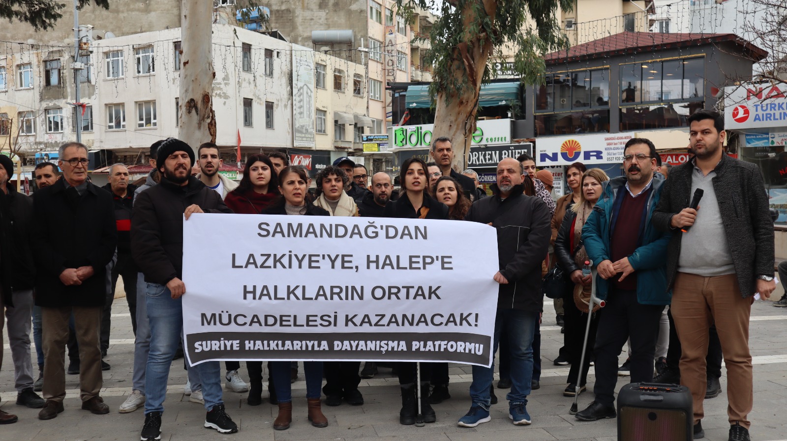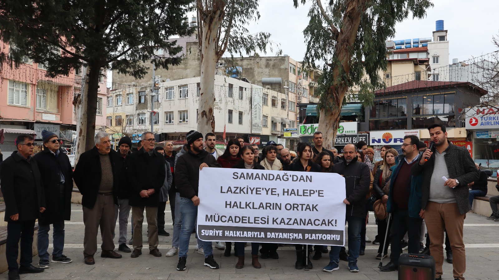 Saldırılara ilişkin Hatay Samandağ’da açıklama yapıldı. Suriye Halklarıyla Dayanışma Platformu tarafından yapılan açıklamada konuşan DEM Parti Hatay İl Eş Başkanı Naim Özbek, Lazkiye, Hama, Tartus, Humus ve Süveyde’de Alevi ve Dürzilere yönelik saldırıların bir benzerinin Halep’te Kürtlere karşı yapıldığını belirterek, Kürt halkıyla dayanışma içerisinde olacaklarını söyledi.