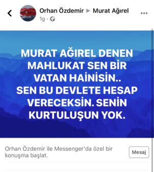 PİRHA- Yeniçağ Gazetesi yazarı ve Halk TV programcısı Murat Ağırel, sosyal medyada AKP Kapaklı ilçe teşkilatı üyesi Emrah Çelik adlı kişi tarafından tehdit edildiğini duyurdu.