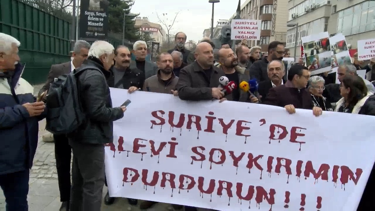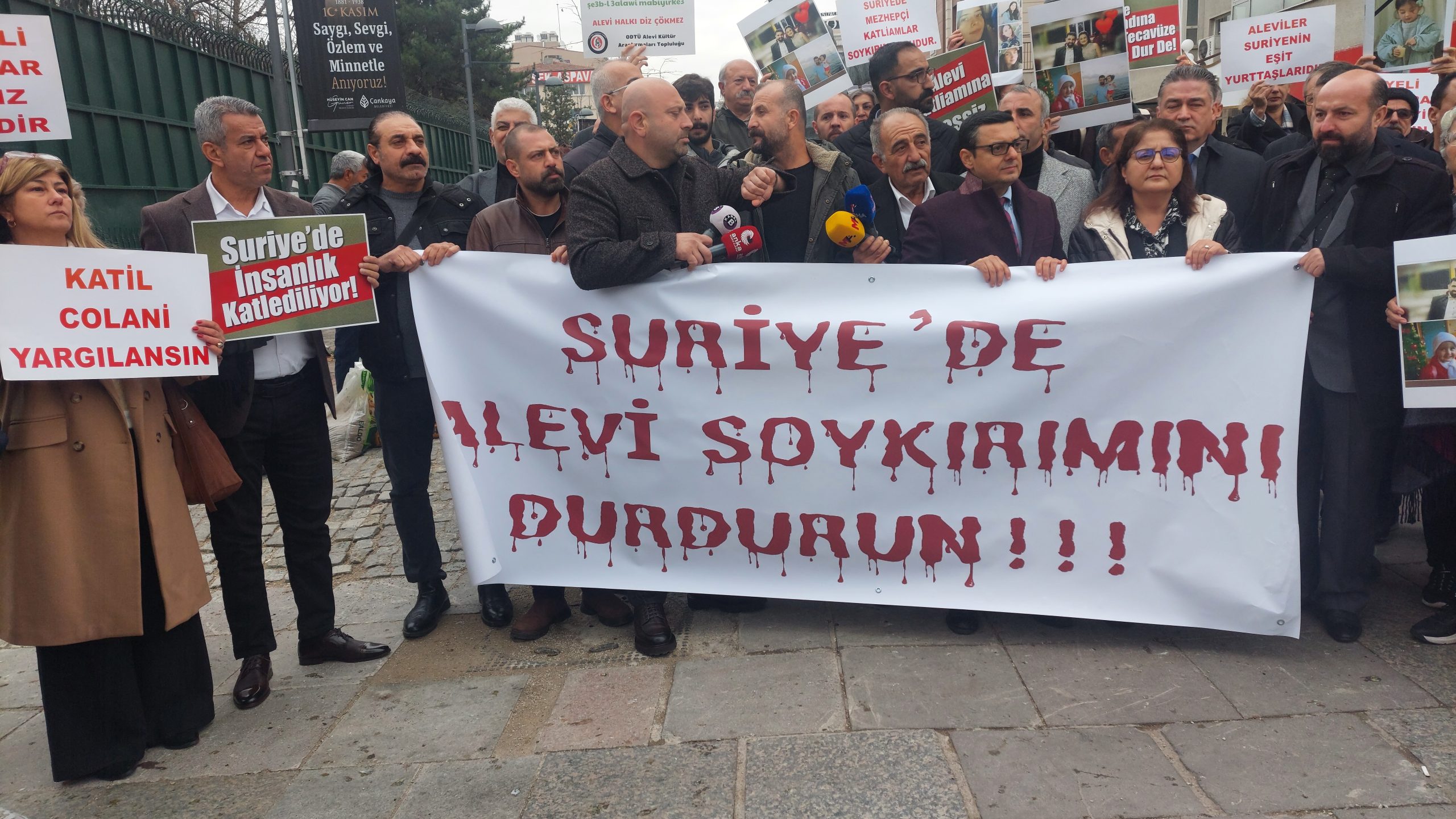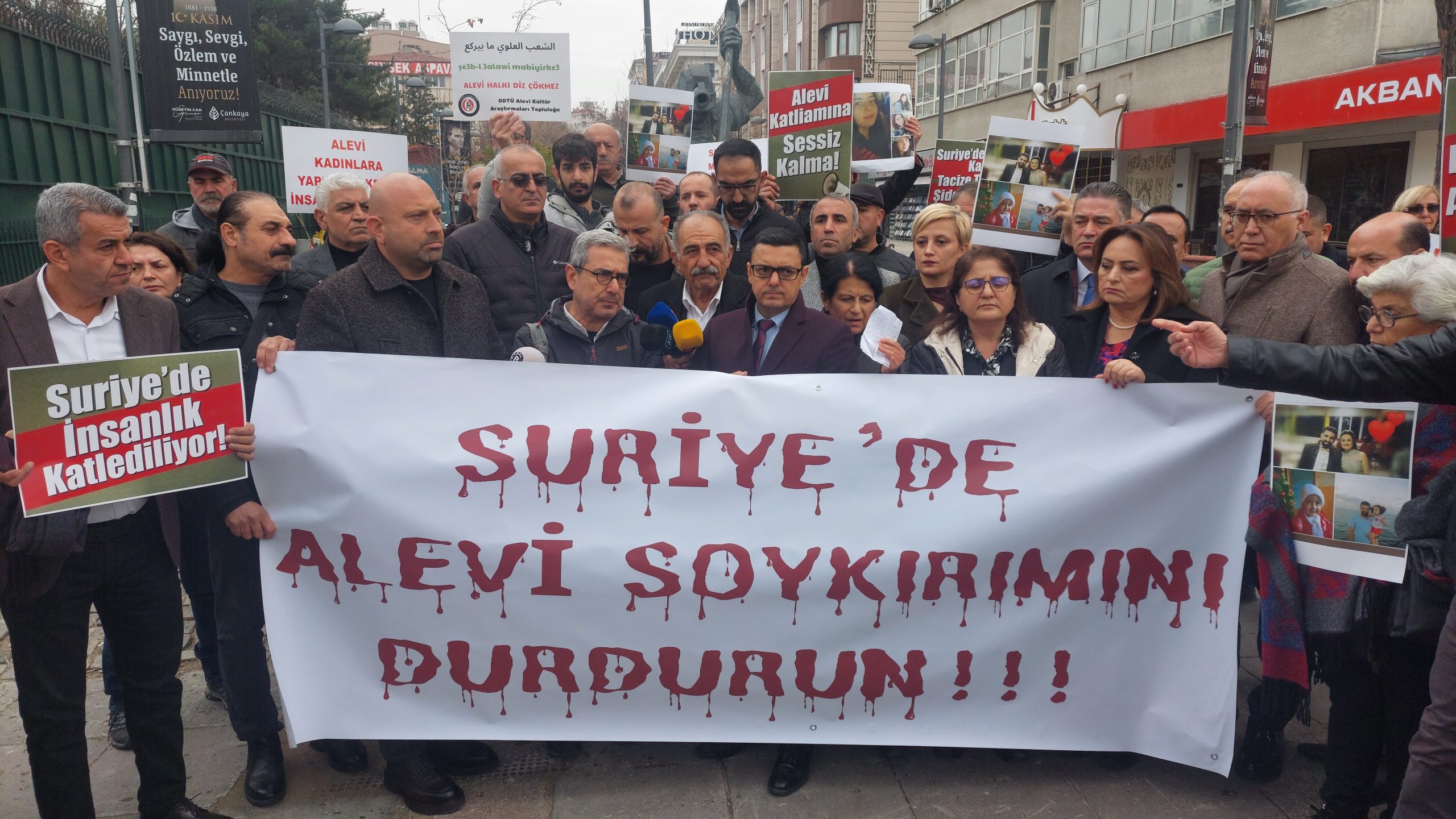 “Suriye’de insanlık katlediliyor”, “Alevi halkı yalnız değildir” sloganlarının atıldığı eyleme DEM Partili ve CHP’li milletvekilleri destek verdi.