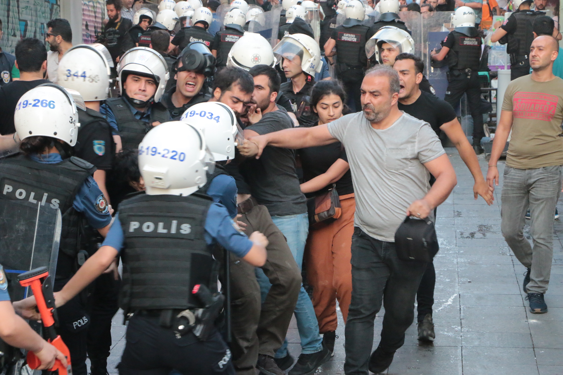 Ancak kitlenin önü polis barikatıyla kesilip, müdahalede bulunuldu. Yapılan müdahalede yürüyüş kolunun önünde bulunan HDP Milletvekilleri Erol Katırcıoğlu, Murat Çepni ve Gülistan Kılıç Koçyiğit ile birlikte HDK Eş Sözcüsü Sedat Şenoğlu polislerce tekmelendi.