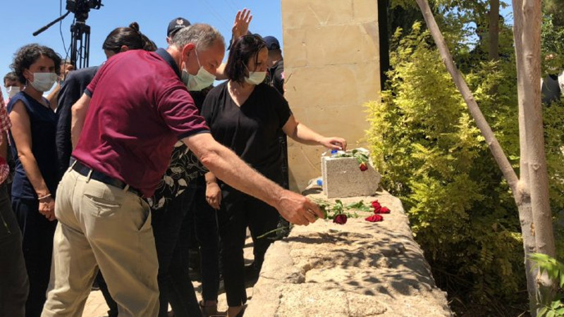 Konuşmaların ardından mezarlık duvarına güller bırakıldı.