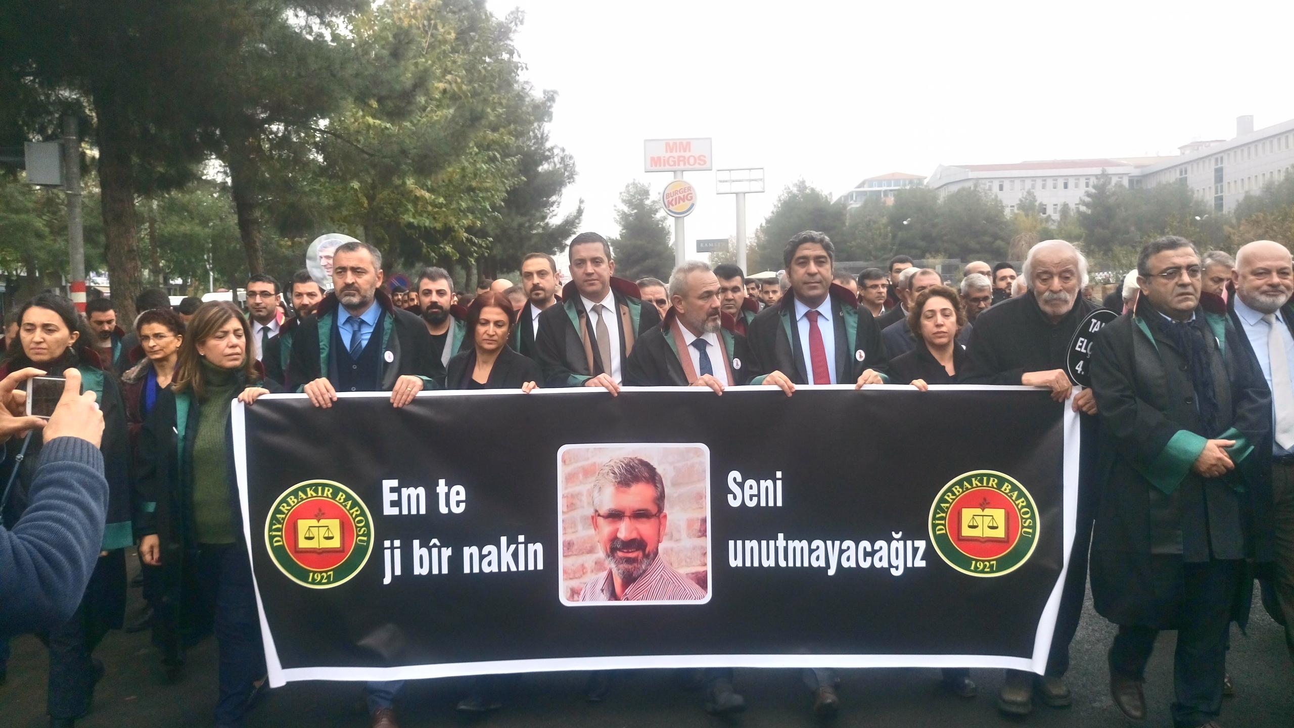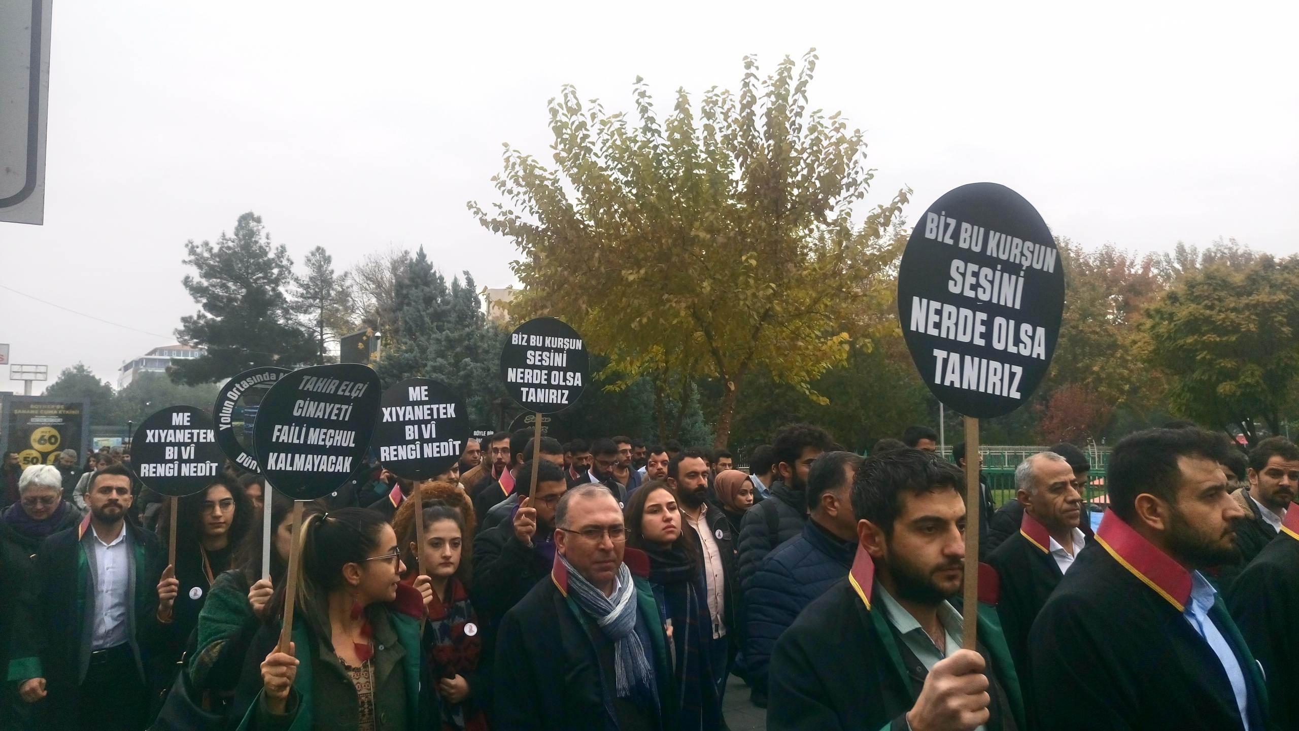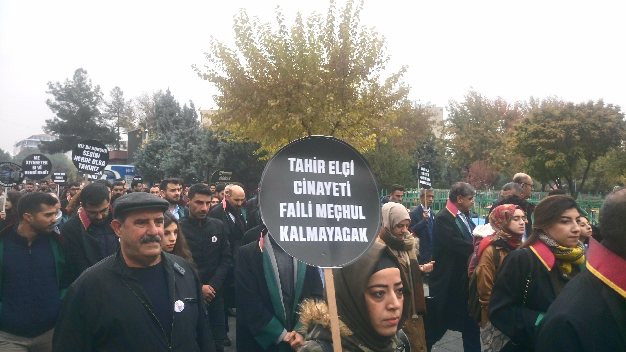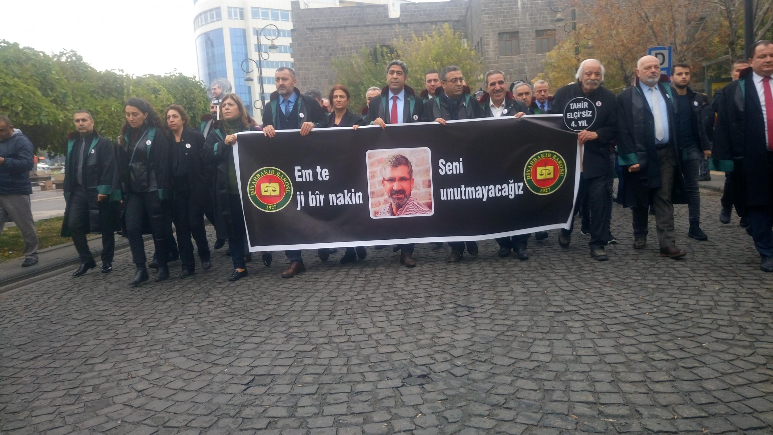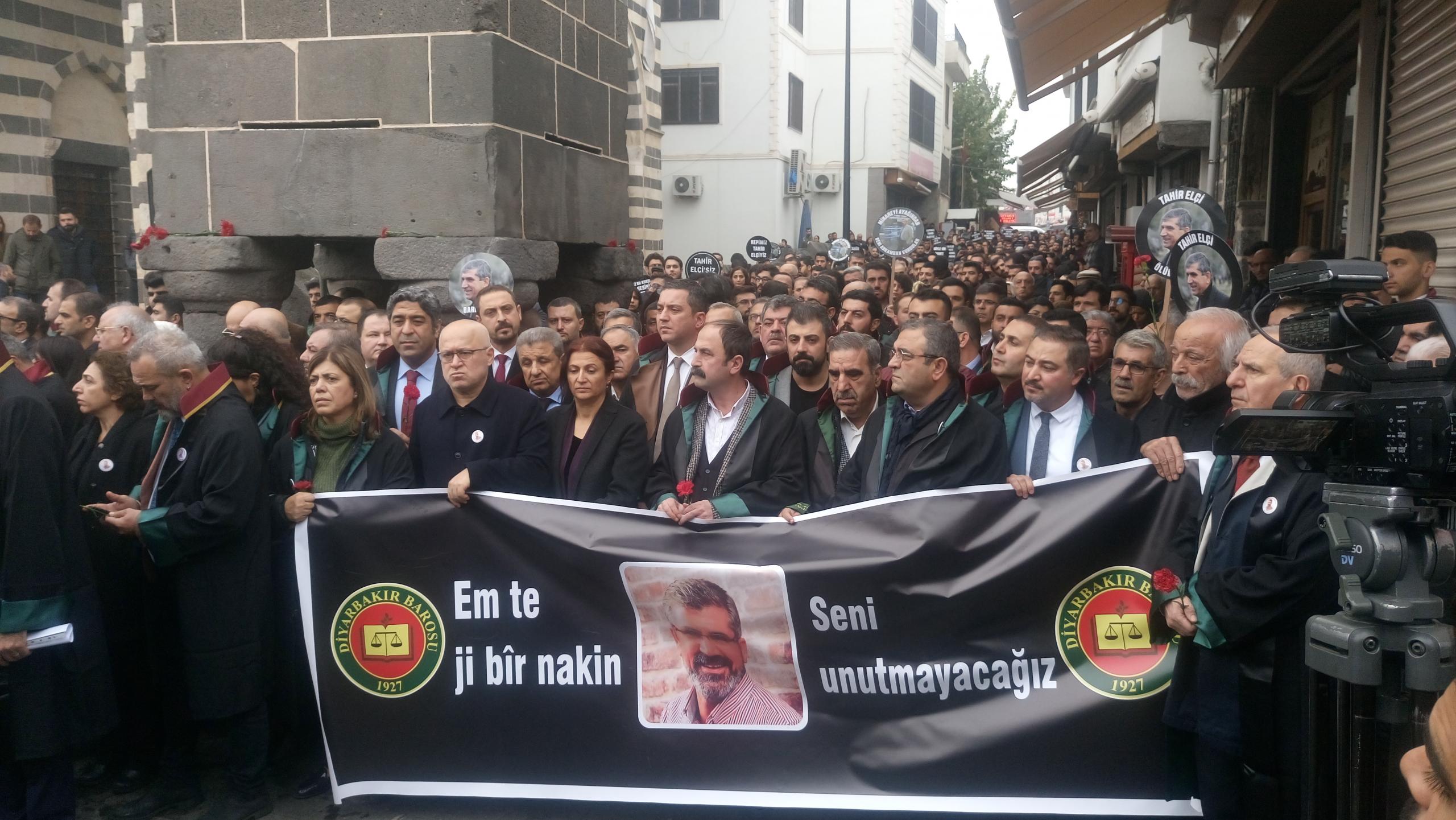 Diyarbakır Barosu ve Tahir Elçi İnsan Hakları Vakfı, öldürülen başkanları Tahir Elçi’yi ölümünün 4’üncü yılında andı. Diyarbakır Adliyesi önünde toplanan yüzlerce avukat, Dört Ayaklı Minareye yürüyerek saat 10.53’te basın açıklaması yaptı. Polisin yoğun güvenlik önlemleri altında gerçekleşen yürüyüş ve açıklamaya, Demokratik Toplum Kongresi (DTK) Eşbaşkanı Berdan Öztürk, CHP Milletvekilli Sezgin Tanrıkulu, HDP milletvekilleri Ebru Günay, Saliha Aydeniz ve Meral Danış Beştaş Ankara, Bursa, Aydın, Antalya ve bölge barolarından oluşan 25 baro başkanı katıldı. “Em te ji bîr nakin-Seni unutmayacağız” yazılı pankartın açıldığı yürüyüş boyunca “Tahir Elçi Ölümsüzdür” ve “Tahir burada katiller nerde” sloganları atıldı.