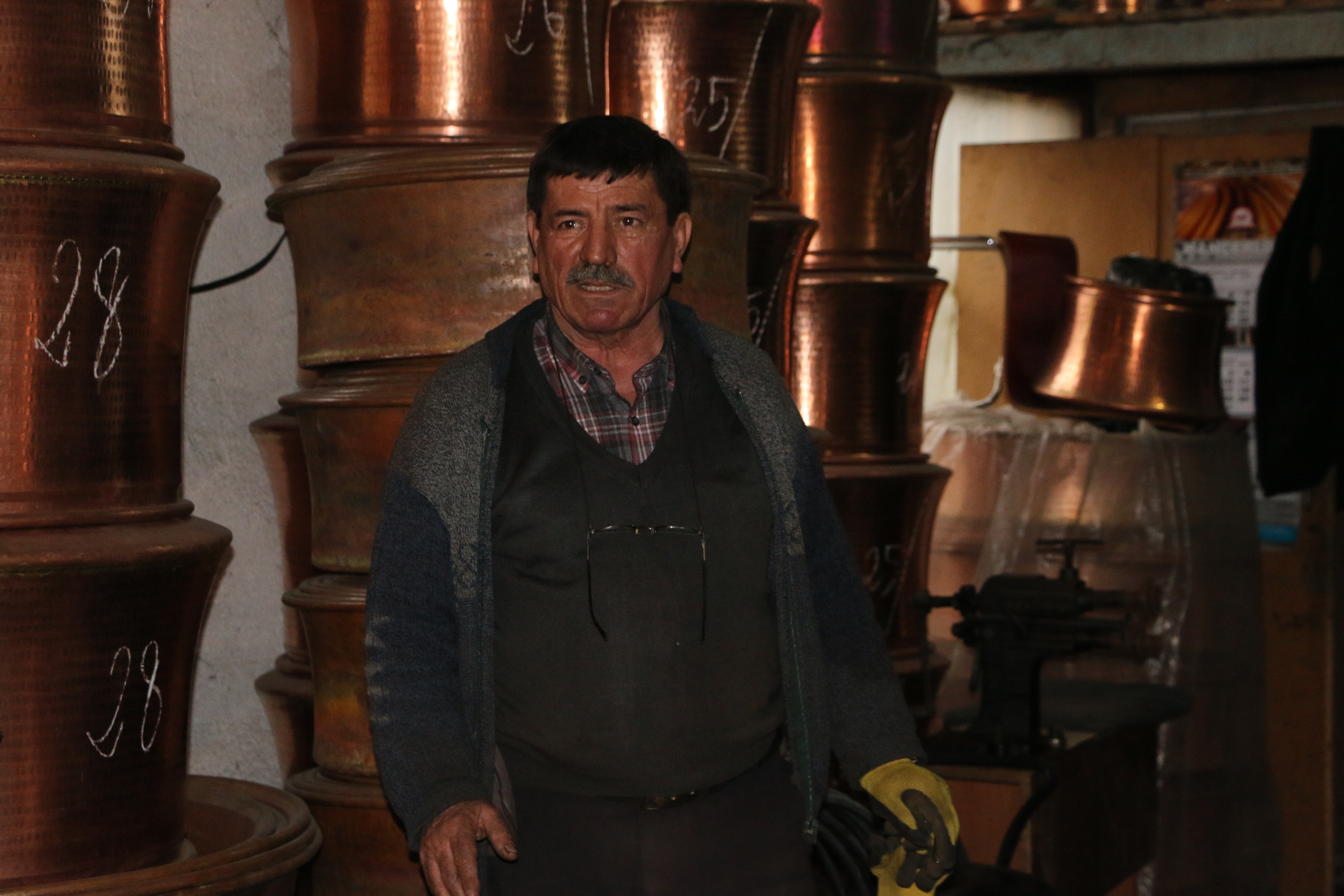 “Bu arastası da 100-150 kişi vardı. Kimi bakırcı kimi kalaycı. Yani çekicin sesinden geçilmiyordu. Kimi öldü kimisi bıraktı başka mesleklere yöneldi. Şimdi sadece 4 dükkan kaldı. Bu 4 dükkan da Türkiye çapında her yere gidiyor.”