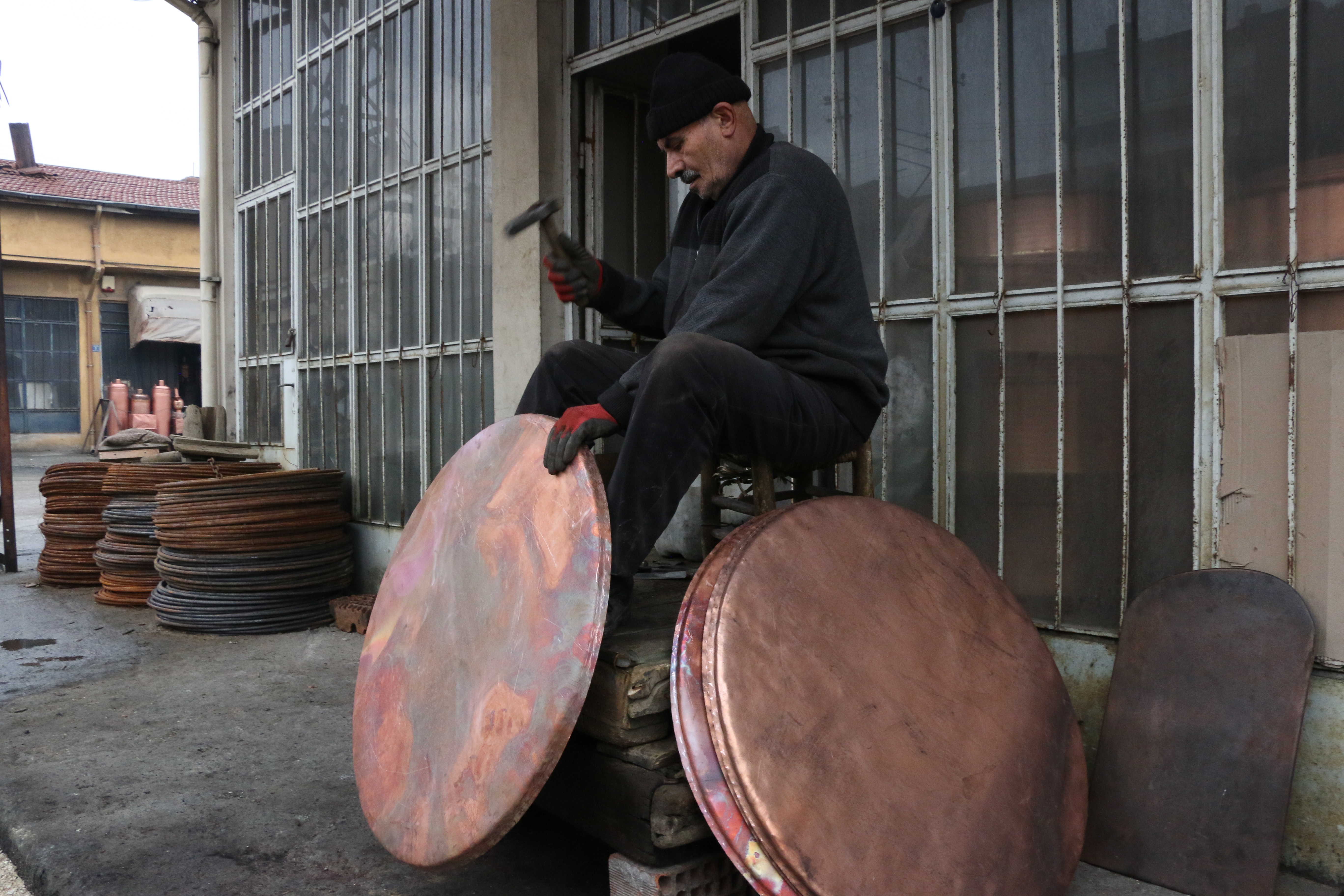 Uysal, “Her şey güzel olur bakırda. Yemeği de hoş olur, lezzetlidir. Çelik, alüminyum çıktı bakırcılık bitti. Bu sanat yok oluyor yavaş yavaş. Bu siniler eskiden yapılırdı, kalaylanıyordu üzerinde kahvaltı yapardık. Şimdi süs olarak duvarlara asılıyor. Yine köy ekmeği yapıyorlar bunun üzerinde. Köylerdekiler genelde satın alıyor” diyor.