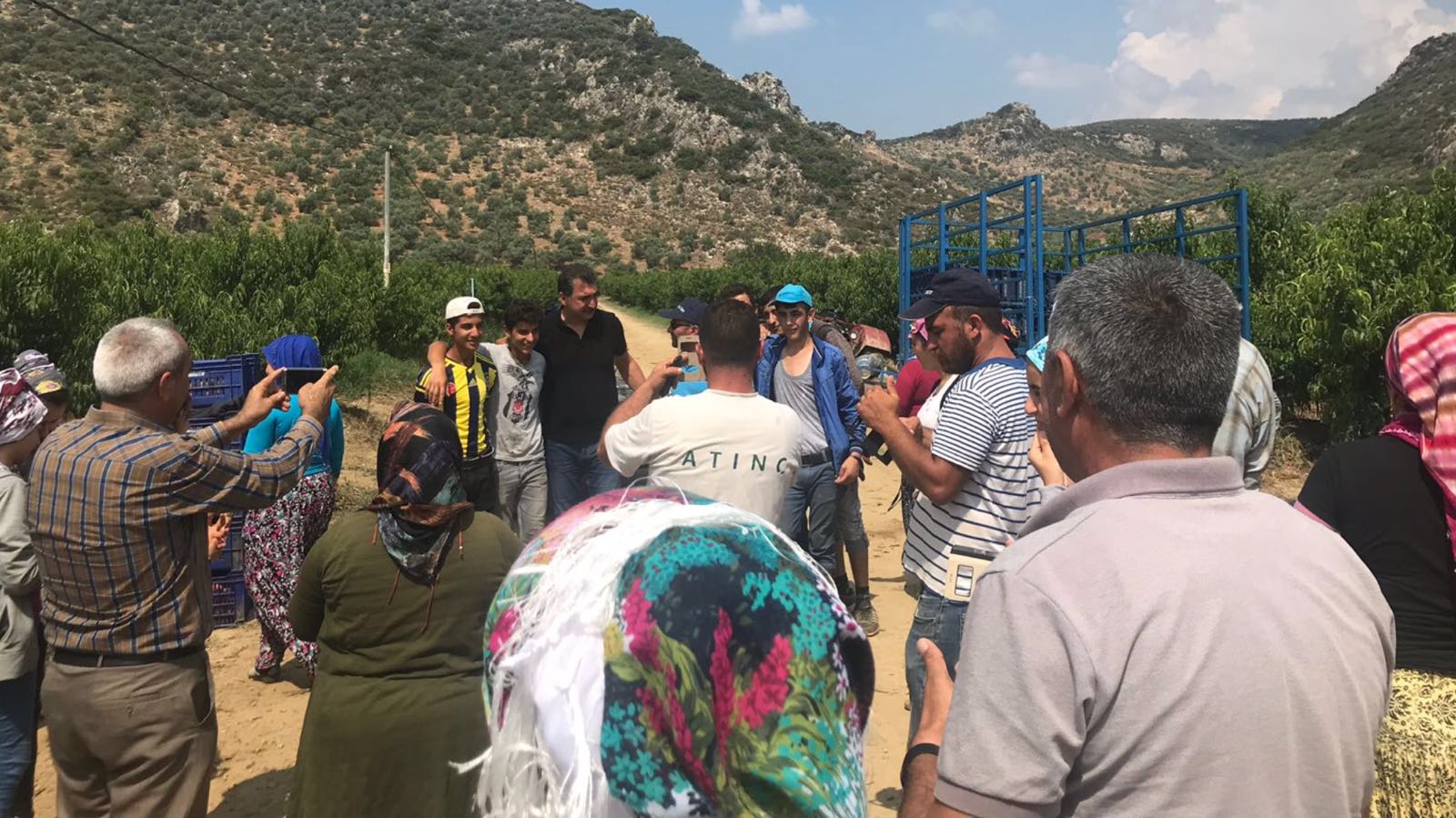Dün önce Aydın’da Germencik ilçesinde tarım işçileri ile buluşup sohbet eden Tunç “Gece saat 3’ten gündüz 2’ye kadar çalışma mı olur, bu kadar saat boyunca çalıştırılıp sadece 55 TL yevmiye reva görülmek hangi vicdana sığıyor” sözleriyle isyan etti. HDP’nin tarım işçileri ile ilgili yapacağı çok şey olduğunun altını çizen Tunç, “Hiç kimse burada 5 saatte çalışsa asla sigortasız çalışmayacak, bu sömürüye izin vermeyeceğiz, herkesin iş güvencesi, sendikası olacak” dedi.