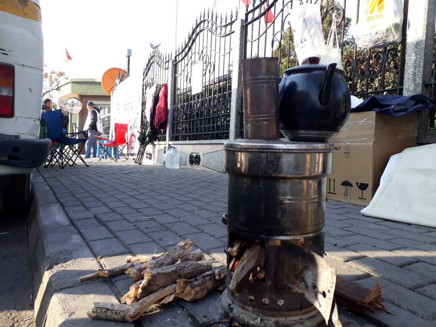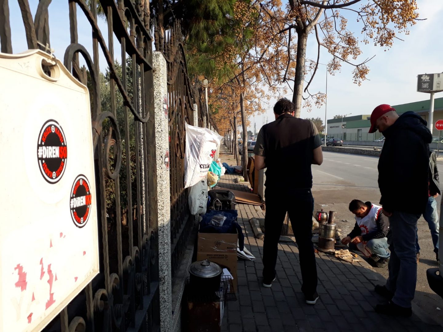 PİRHA – İzmir Çiğli’de TARİŞ Zeytin ve Zeytinyağı Fabrikası’nda DİSK/Gıda-İş Sendikası’na üye oldukları için işten atılan 7 işçinin fabrika önünde başlattıkları direniş 28. gününde. İşçiler, patronların tüccar mantığında olduğunu belirterek, sendikal haklarını ve işe iade edilene kadar fabrika önünde direnişlerini sürdüreceklerinin vurguladılar.