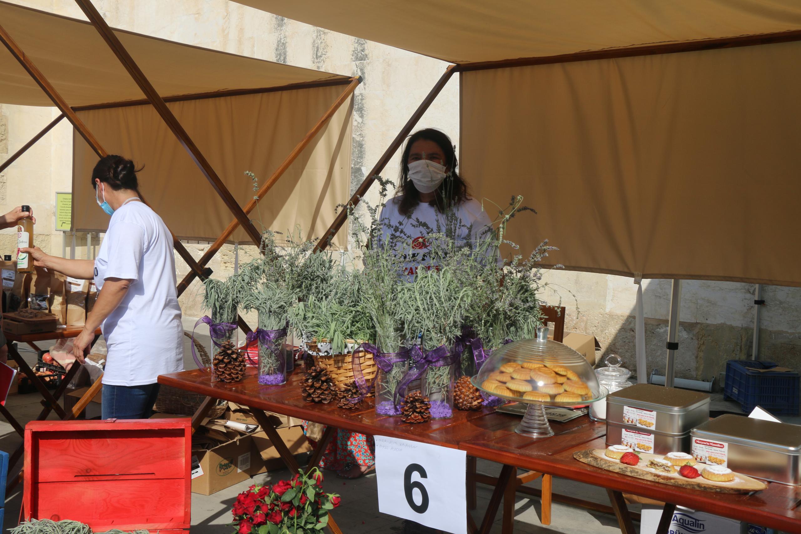 Pazarda, yöreye ait çok çeşitli taze meyve, sebze, yumurta, bal, tatlılar, pastacılık, ekmek, yağ, yerel yemek kültürlerine ait ürünler yer aldı.