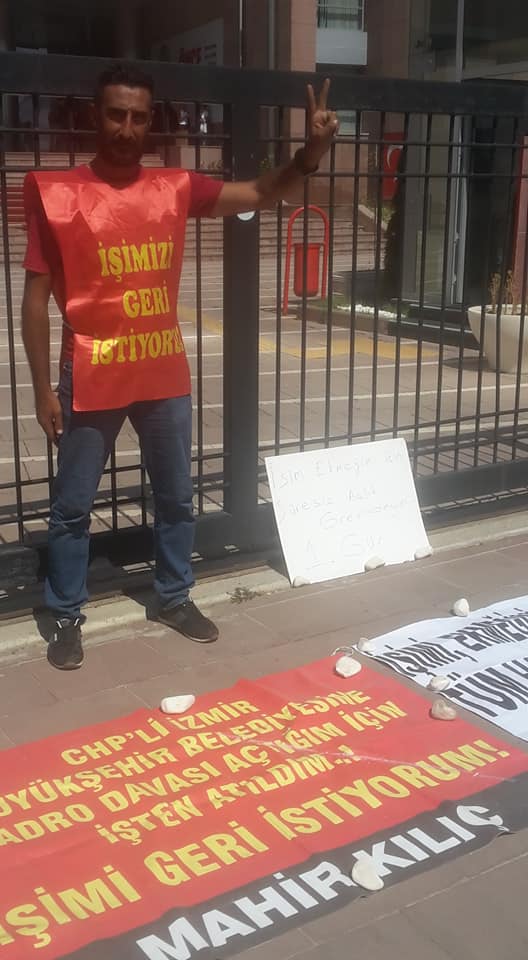 Çalıştığı CHP’li İzmir Büyükşehir Belediyesi’ne kadro davası açtığı gerekçesiyle işten çıkarılan 258 işçiden biri olan Mahir Kılıç, İzmir’de başlattığı eylemini geçtiğimiz haftalarda CHP Genel Merkezi önüne taşıdı. 37 gündür Ankara CHP Genel Merkez önünde oturma eylemi yapan Kılıç, eylemini süresiz açlık grevine dönüştürdüğünü duyurdu.