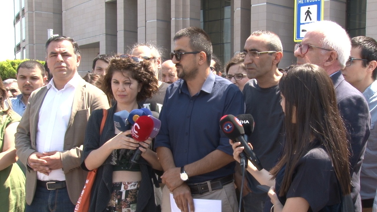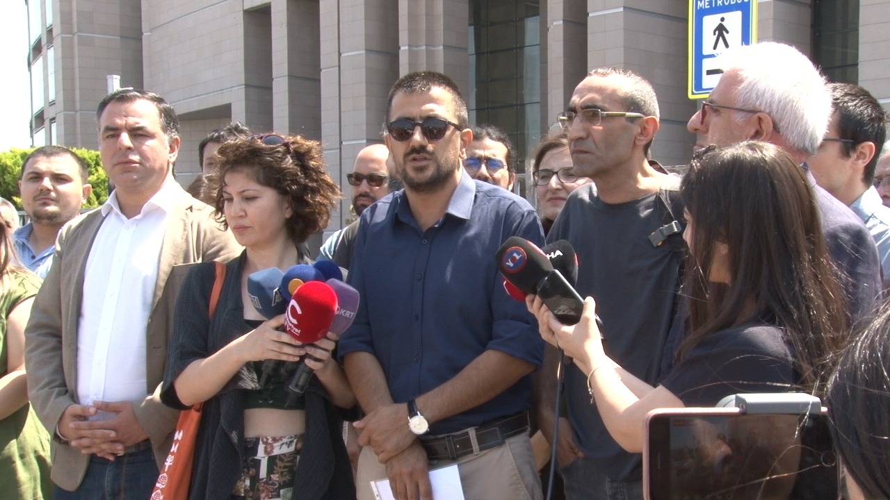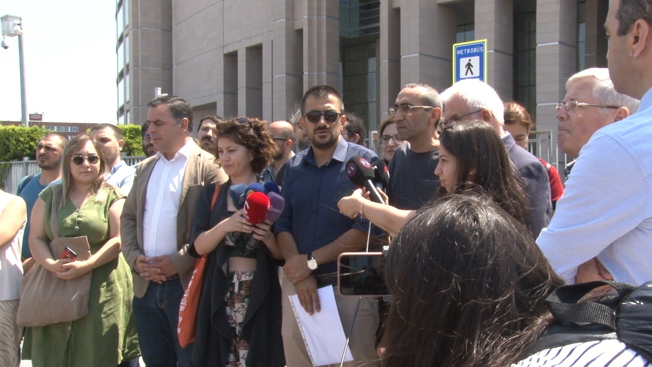 Suç duyurusu öncesi, aralarında TGS Genel Başkanı Gökhan Durmuş’un da bulunduğu çok sayıda gazeteci, adliye önünde bir araya gelerek basın açıklaması yaptı.