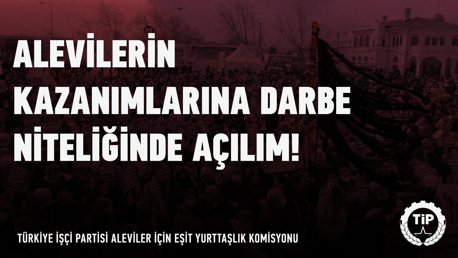TİP Aleviler için Eşit Yurttaşlık Komisyonu’ndan yapılan yazılı açıklamada, “Belediye başkanı olduğu dönemde Aleviler için kutsal sayılan bir yere “ucube” diyen, cemevleri için “cümbüş evi “ifadesini kullanan, Sivas Katliamı sanıklarının avukatlarını partisinden milletvekili ve bakan yapan Erdoğan’ın, ‘Kültür ve Cemevleri Başkanlığı kurulacak’, ‘Kültür ve Turizm Bakanlığımız bünyesinde Alevi Bektaşi Kültür ve Cemevi Başkanlığı, cemevlerinin tamamının yönetimini yürütecek’ ifadeleri iktidar medyası tarafından Alevilere ‘müjde’ olarak sunuldu. Daha birkaç gün önce muhalefet tarafından gündeme taşınan başörtüsü konusunu, tarikatları daha fazla memnun edecek gerici uygulamalar için fırsata çevirmeye çalışan Erdoğan’ın niyeti Alevilerin sorunlarını çözmek olamaz! Demokratik reform adı altında Alevilere müjde diye sundukları pakete baktığımızda, söylenenin aksine, yeni anti demokratik saldırıları görüyoruz. Amaçları Alevileri aldatmak ve cemevlerine el koymaktır. Bu topraklarda binlerce yıldır yaşayan Alevilerin sorunları fatura, imar ya da personel maaşlarına indirgenemez” dedi.