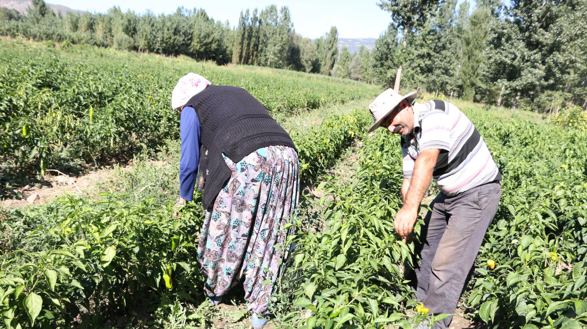 Nisan ayında tarlayı ekmeye başlayan Tösel, “Kasım ayına kadar devam ediyoruz. Ürün yaşatması zor, hastalığı çok ama ben elimden geldiği kadarıyla organik yetiştirmeye çalışıyorum. Sudan başka bir şey vermiyorum. İlaç kullanmıyorum. Baharda gelip dikiyorum, güzün de topluyorum” diye konuşuyor.
