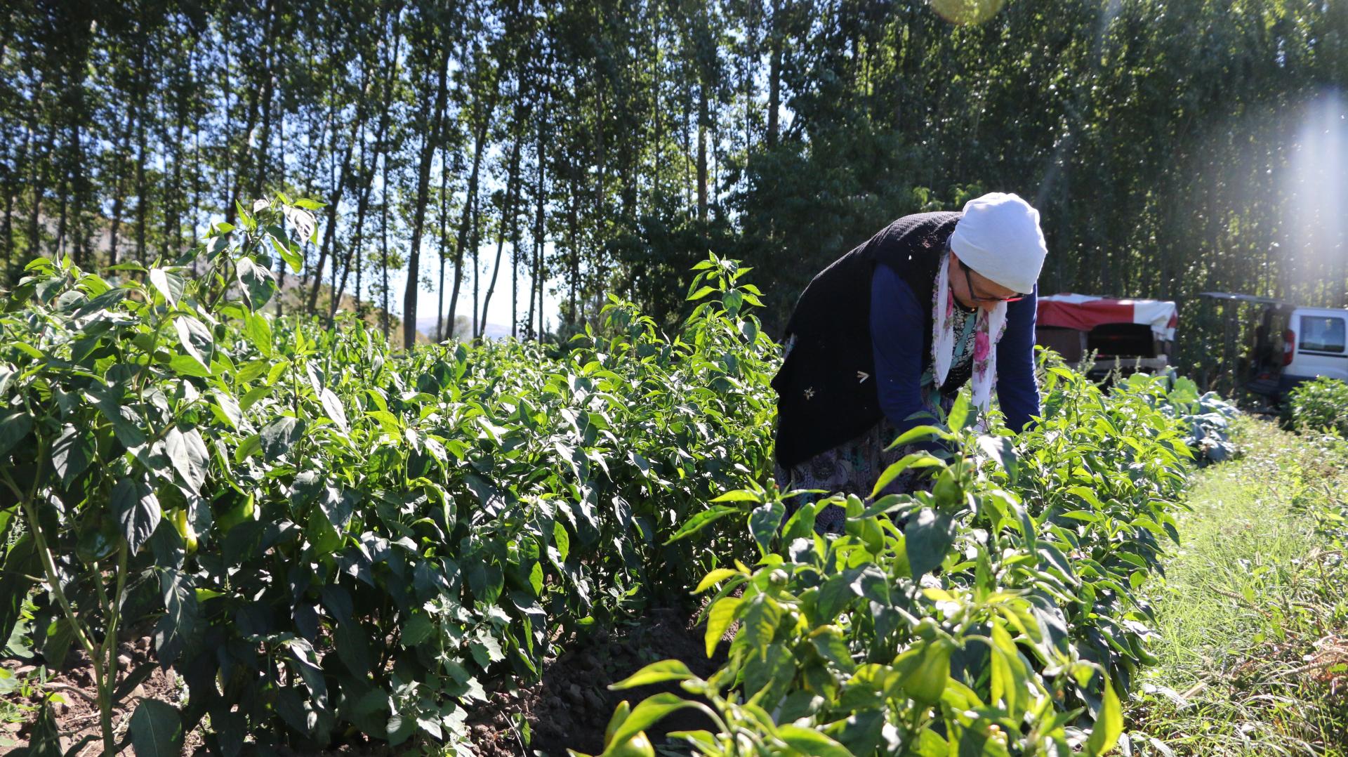 “Burada yiyebileceğim kadar mahsul ekiyorum” diyen Tösel, satamadığı için fazla ürün yetiştirmediğini söylüyor.