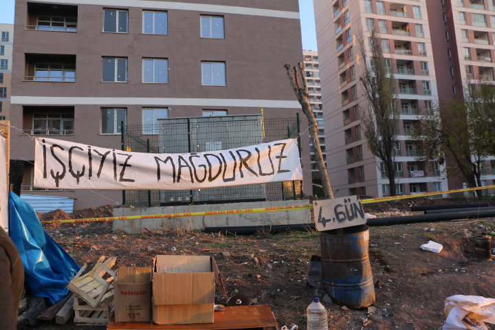 Direnişteki işçilerin sözcülüğünü yapan Hasan Durgaç, arkadaşlarıyla birlikte direnişi gece gündüz nöbetleşe sürdürme kararı aldıklarını belirterek direniş alanında fazla kişi oldukları zaman polisin onları dağıttığını söyledi. Bağlı bulundukları taşeron Çınar Altyapı ve Üstyapı İnş. A.Ş. ile Etken Gayrimenkul Yat. İnş. San. Ve İnş. San. Ltd. Sti. İş Ort. firmalarının iflas ettiği bilgisini veren Durgaç, firmanın TOKİ’den 2 milyona yakın para aldığını ancak işçilere hiçbir ödeme yapılmadığını ekledi. Bir arkadaşlarının kalbinden anjiyo olduğunu ancak paraları olmadığı için memleketine gönderemediklerini belirten Durgaç, bugüne kadar herhangi bir yetkilinin gelip durumunu bile sormadığını söyledi.