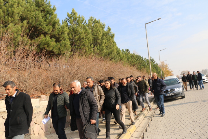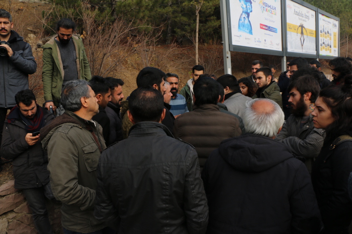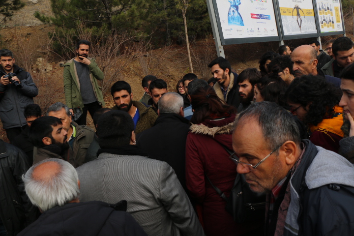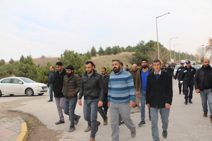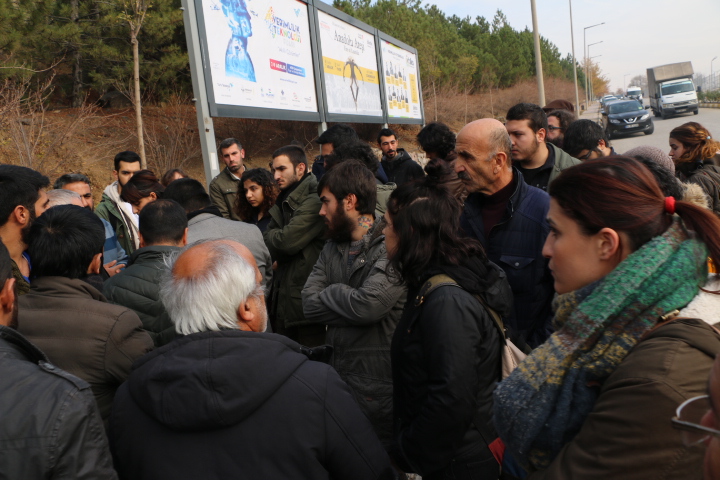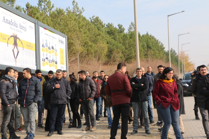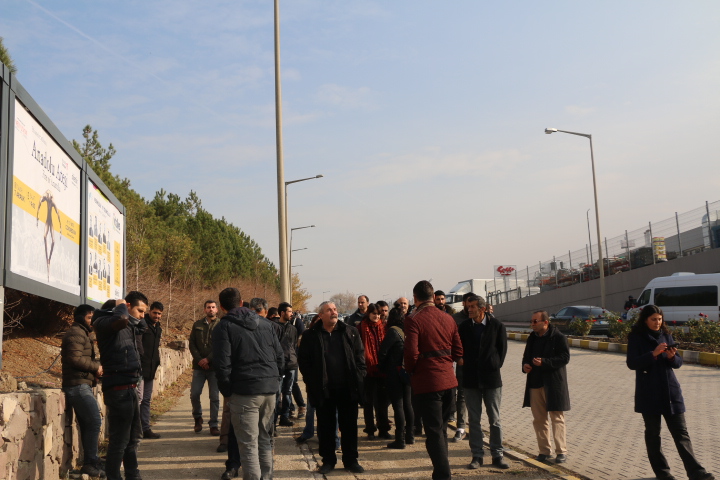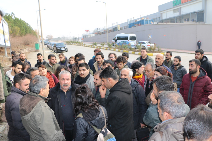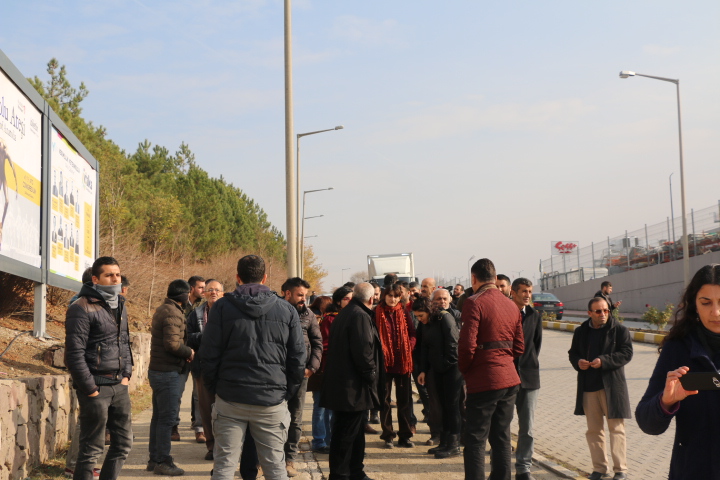 TOKİ işçilerinin açıklama yapacağı yere destek için gelen hiçbir kurum temsilcisinin girmesine izin verilmedi.