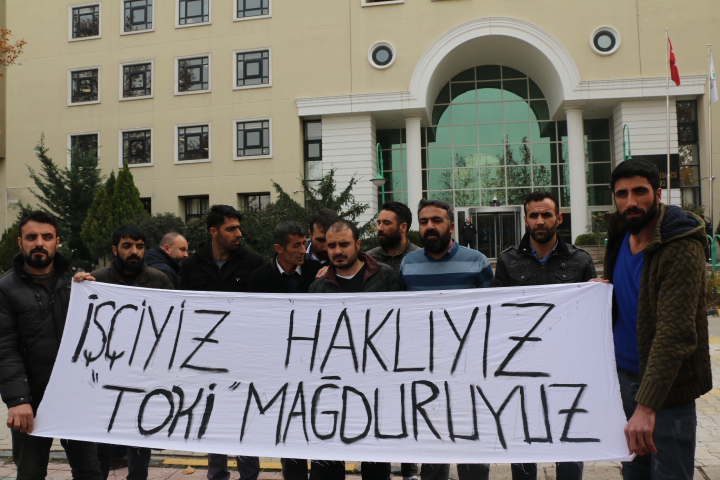 “1 yıldır yaptığımız bütün başvurular, başta TOKİ, Bakanlık ve Mamak Kaymakamı ile görüşmelerimiz sonuç vermemiş maaşlarımız ödenmemiştir. Şunu da bir kez daha belirtmek isteriz. Ankara Mamak 2. Etap TOKl’de işçiler sigortasız çalıştırılmaktadır. Ücretleri ödenmemektedir. Ücret talebinde ısrar eden işçiler tehdit edilmektedir. Daha da acısı bu durumu başta TOKİ yetkilileri olmak üzere tüm sorumlular bilmektedir. Ancak bu hukuksuzluğa kimse ses çıkarmamaktadır.”