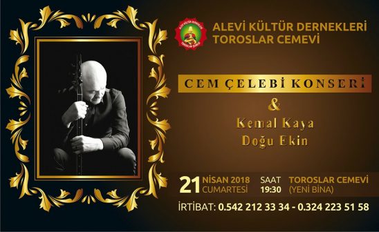 Alevi Kültür Dernekleri Toroslar Cemevi 21 Nisan Cumartesi günü saat 19.30’de dayanışma konseri düzenleyecek.