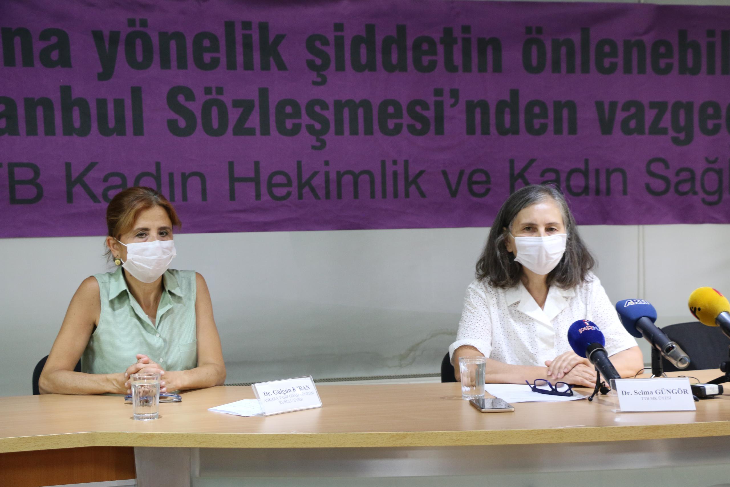 Türk Tabipleri Birliği (TTB) ve TTB Kadın Hekimlik ve Kadın Sağlığı Kolu tarafından kadına yönelik şiddete dikkat çekmek için “İstanbul Sözleşmesi yaşatır! İstanbul Sözleşmesi uygulansın” konulu basın toplantısı yaptı.
