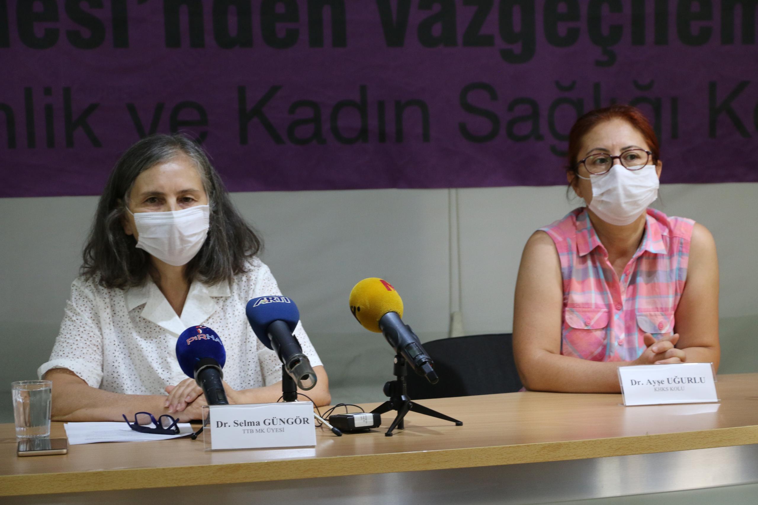 Güngör, kadın hekimler olarak; kadınların yüzyıllardır süren eşitlik, özgürlük ve insan onuruna yakışır yaşam şartlarına sahip olma mücadelesinde ve dayanışmasında hep var olduklarını vurgulayarak, “Mücadelelerimizle elde ettiğimiz haklarımızdan vazgeçmiyoruz, vazgeçmeyeceğiz. Bu kötü gidişata dur demek adına elimizdeki en önemli yasal dayanak olan İstanbul Sözleşmesi’nden Türkiye’nin imzasını çekmesinin doğuracağı sonuçların, sözleşme yürürlükteyken dahi olup bitenlerden yola çıkarak ‘korkunç’ olacağını ısrarla belirtiyoruz. Bu tür insan hakları ihlallerinin önlenmesi için çalışmanın biz hekimlerin en başta gelen görevlerinden biri olduğunun bilincindeyiz” ifadelerini kullandı.